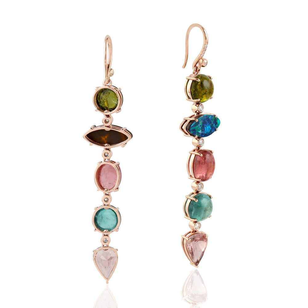 Round Oval Tourmaline Mix Opal Doublet Pave Diamond In Rose Gold Dangler