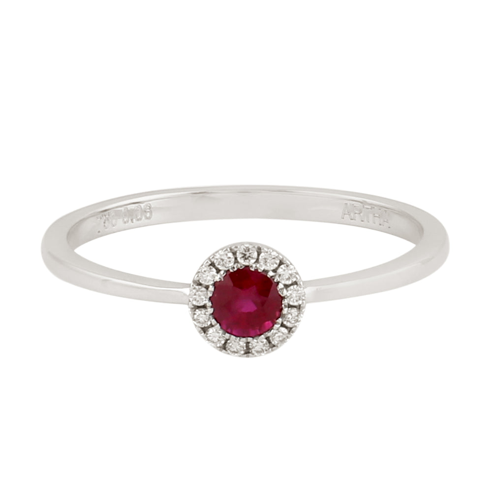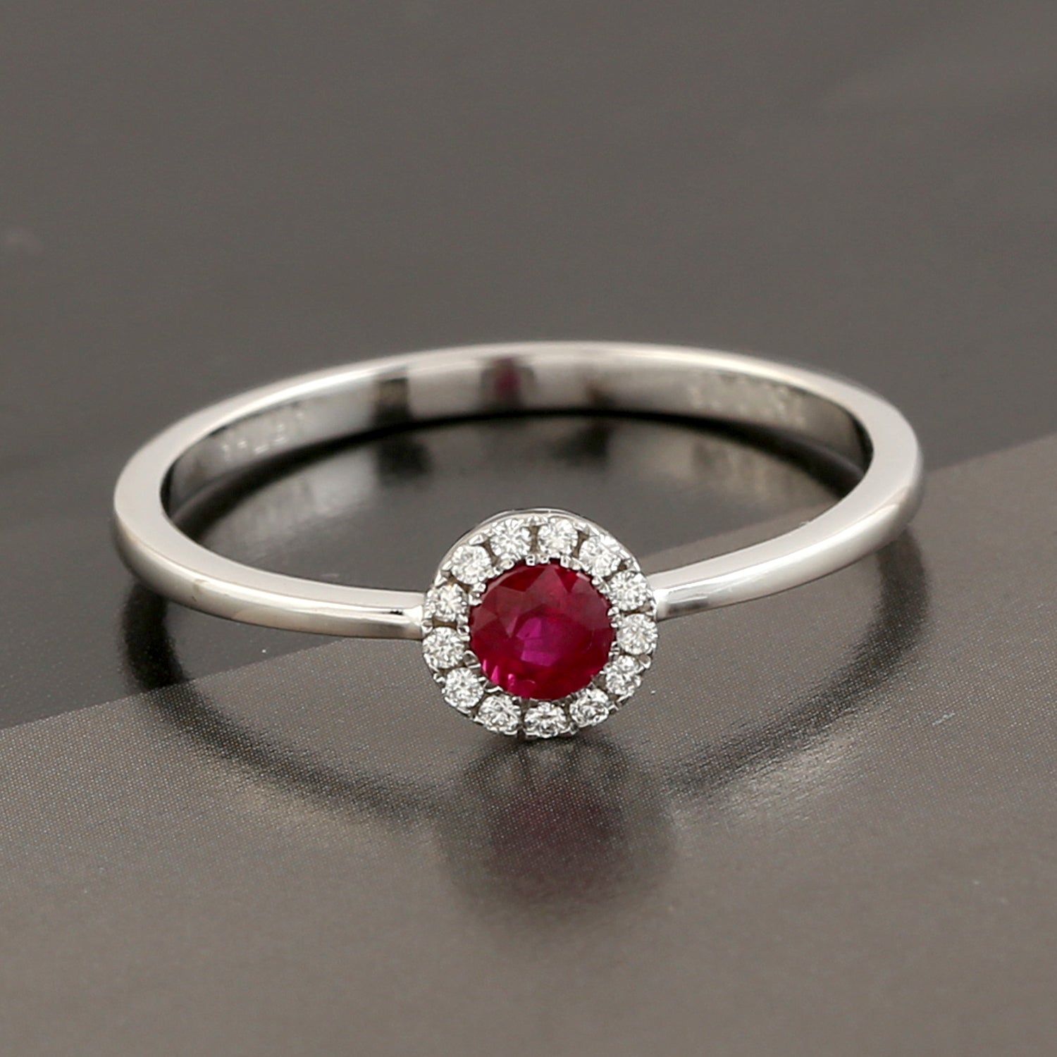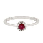 Prong Ruby Pave Diamond In 18k White Gold Delicate Band Ring