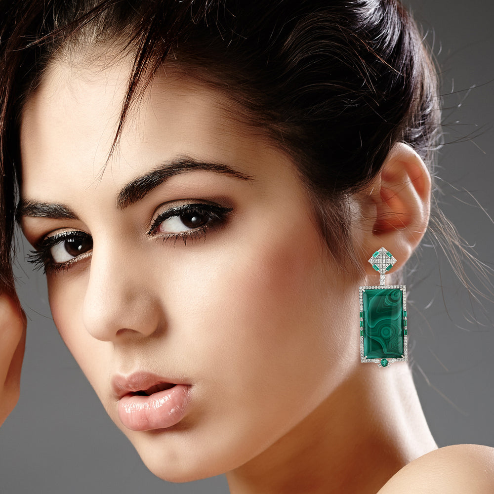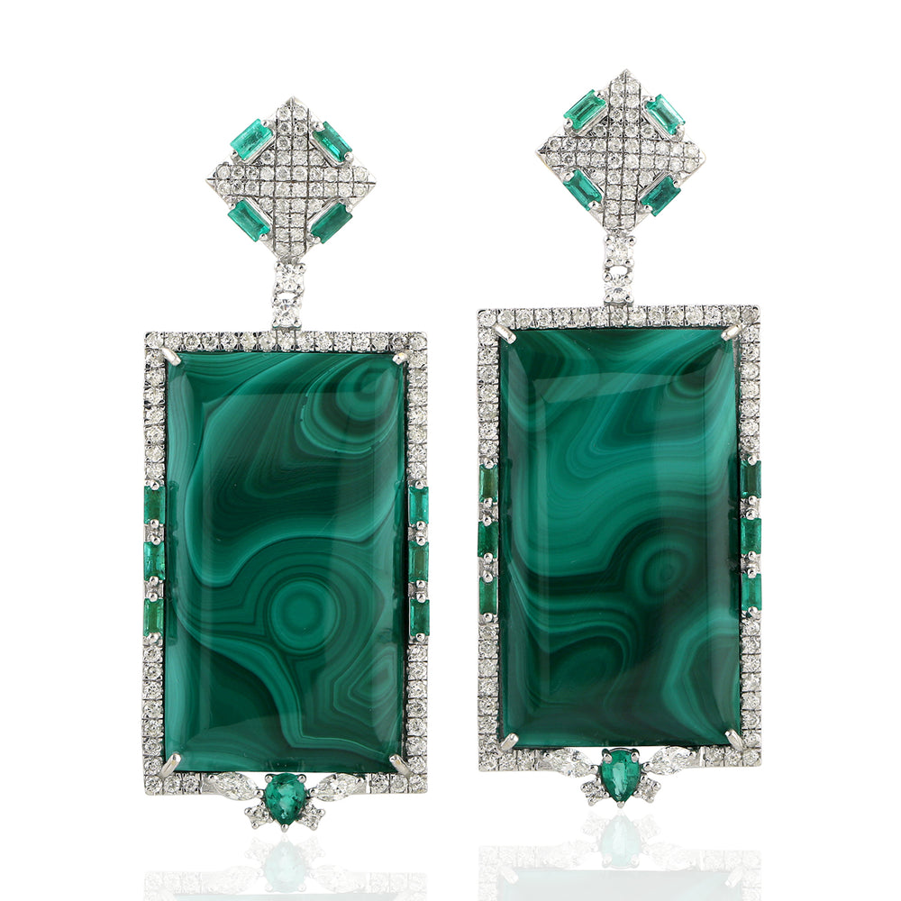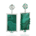 Square Malachite Baguette Emerald Prong Diamond In White Gold Dangler Gift