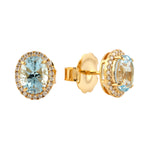 18k Yellow Gold Oval Blue Topaz Stud Earrings with Pave Diamond Accents – Elegant Birthstone Jewelry