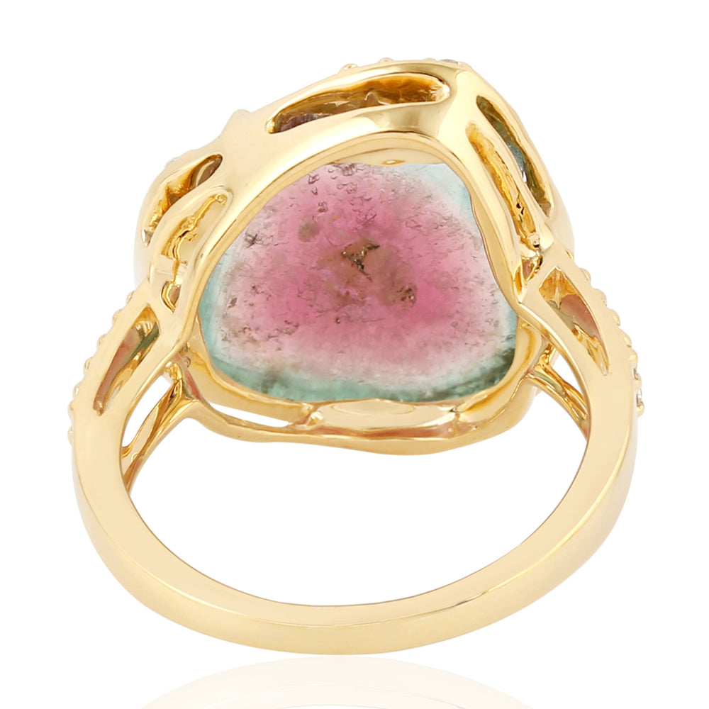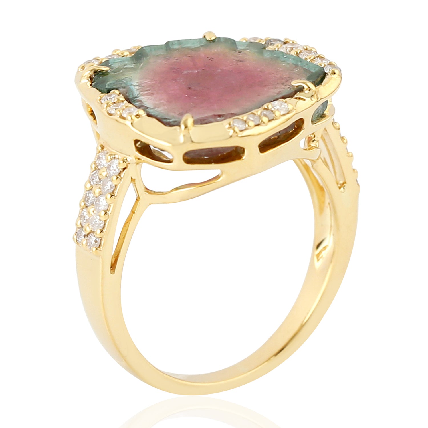 Melon Tourmaline Pave Diamond Cocktail Ring Gift In 18k Yellow Gold