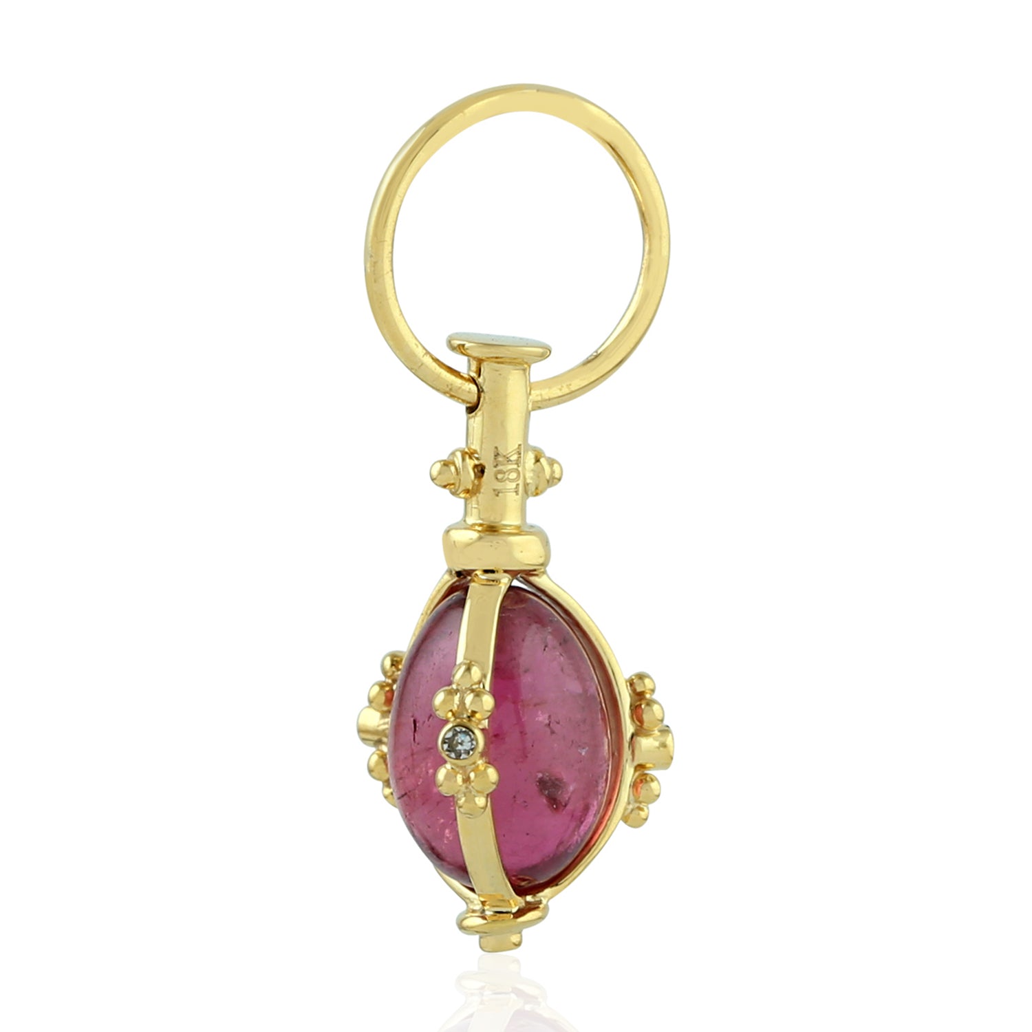 Pink Tourmaline Bezel Diamond Designer Pendant In 18k Yellow Gold