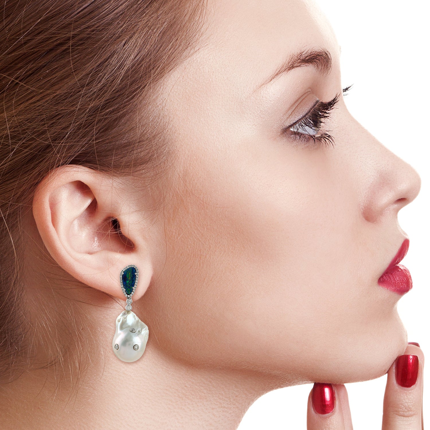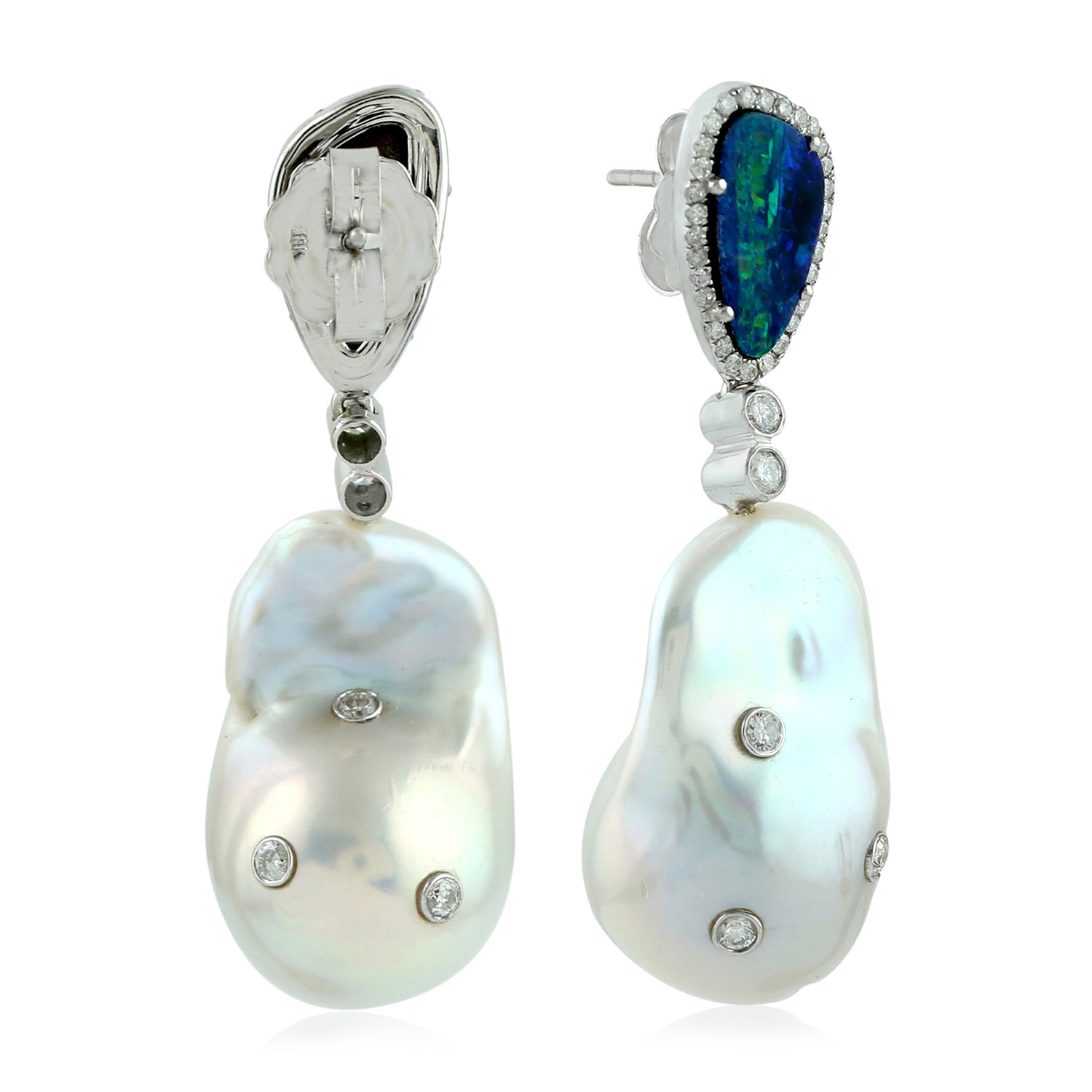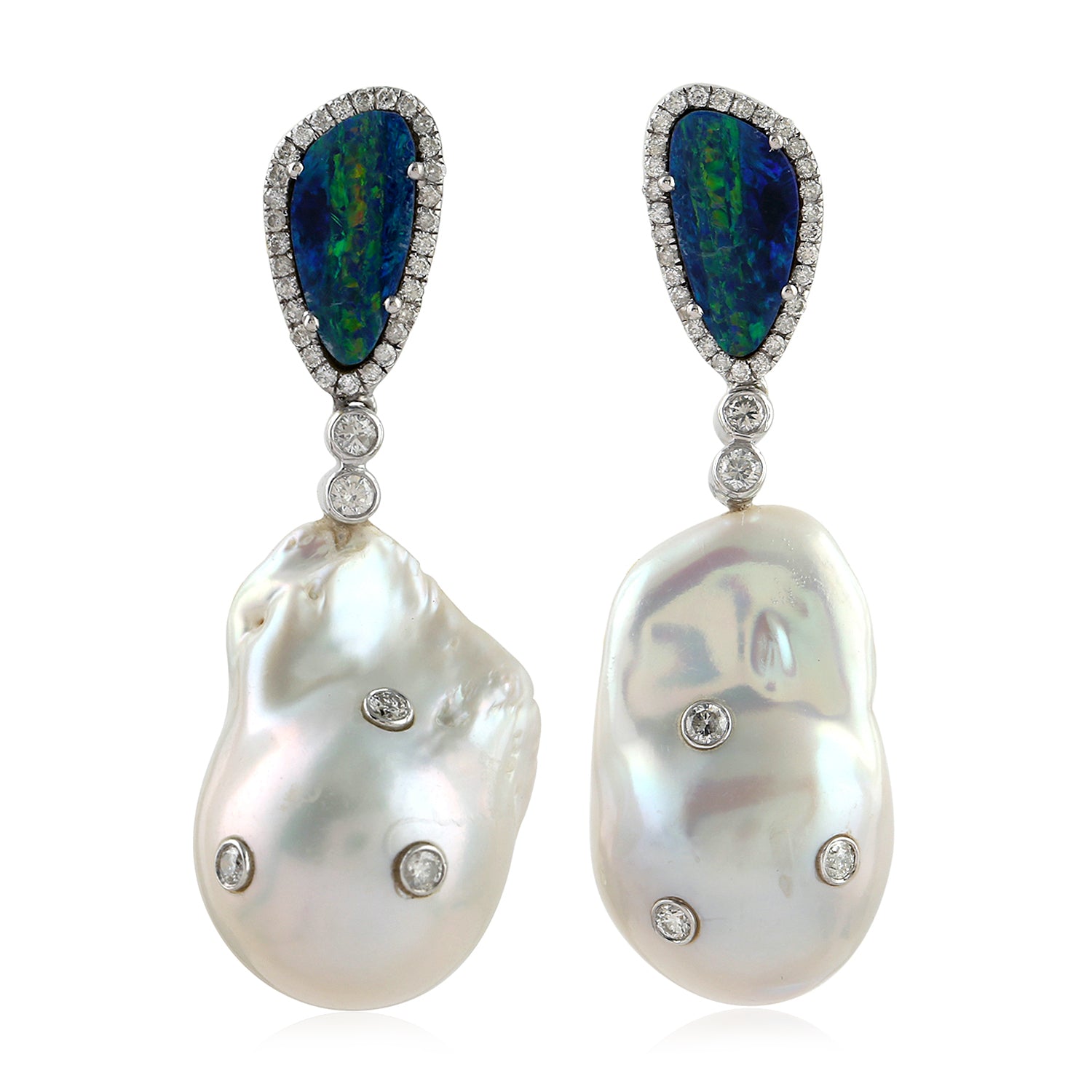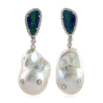 Opal Doublet Uneven Pearl Chinese Pave Diamond Beautiful Dangle In White Gold