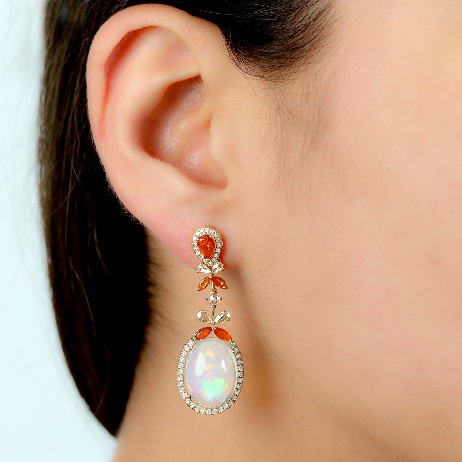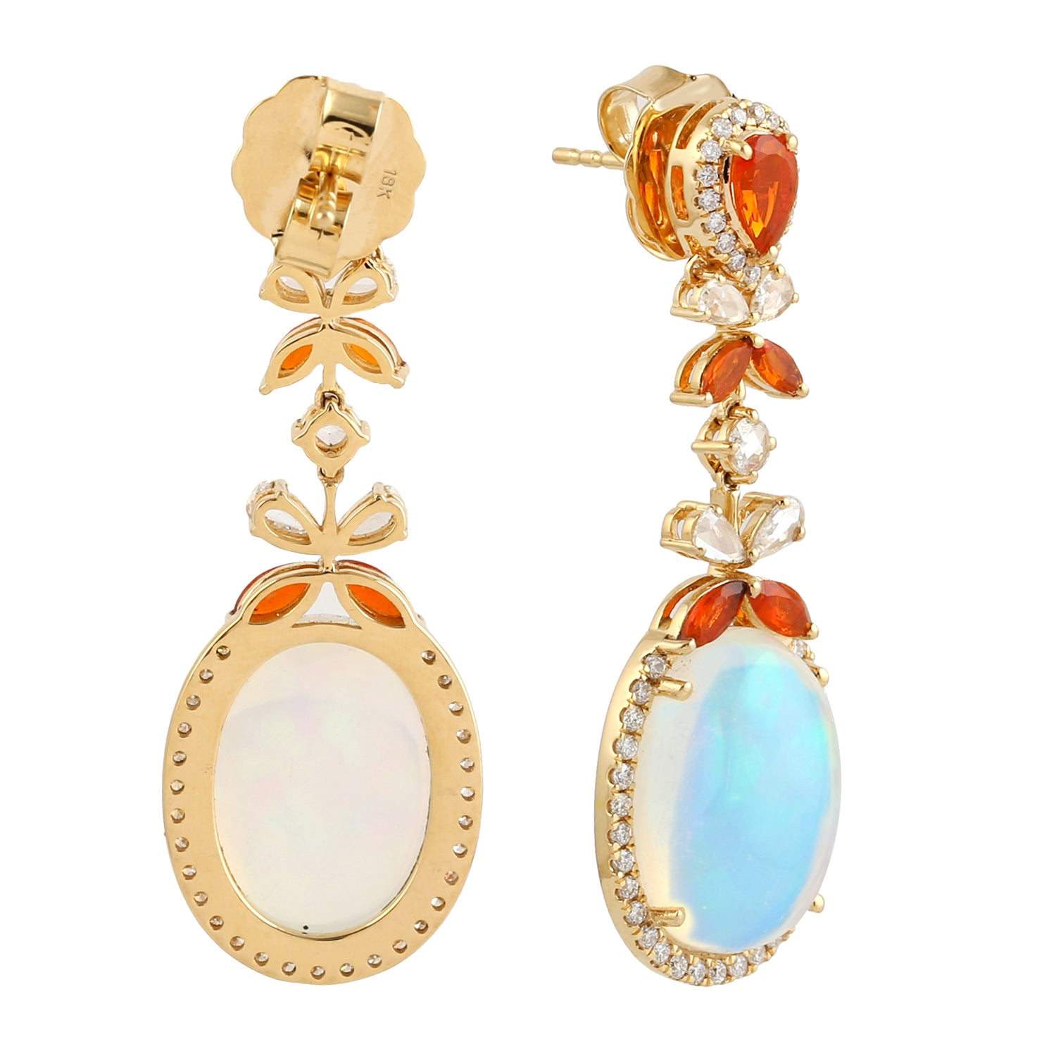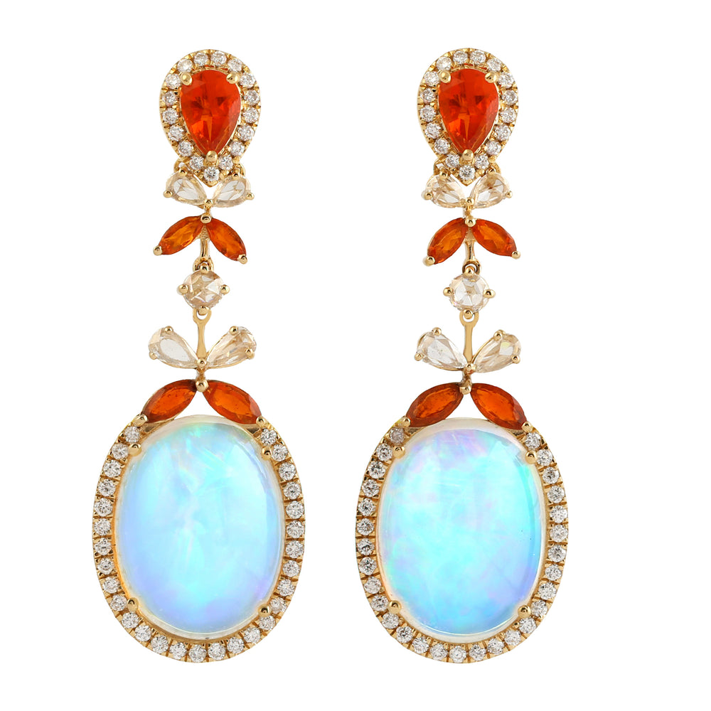 Opal Ethiopian Marquise Opal Fire Gemstone Rose Cut Diamond Danglers In Gold