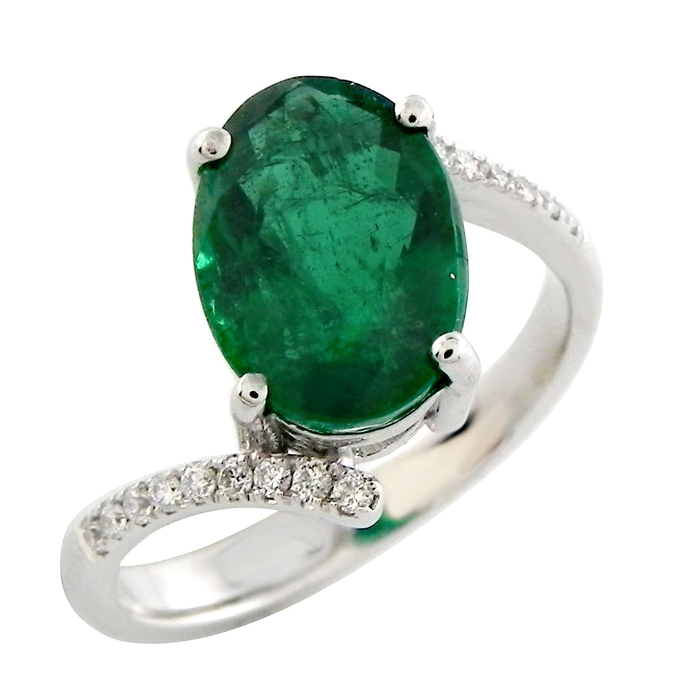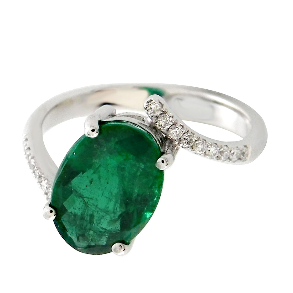 Oval Cut Emerald Pave Diamond Designer Ring in 18k White Gold For Sale