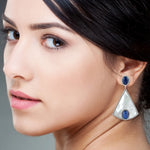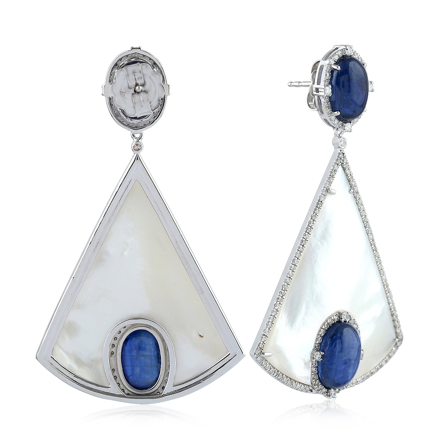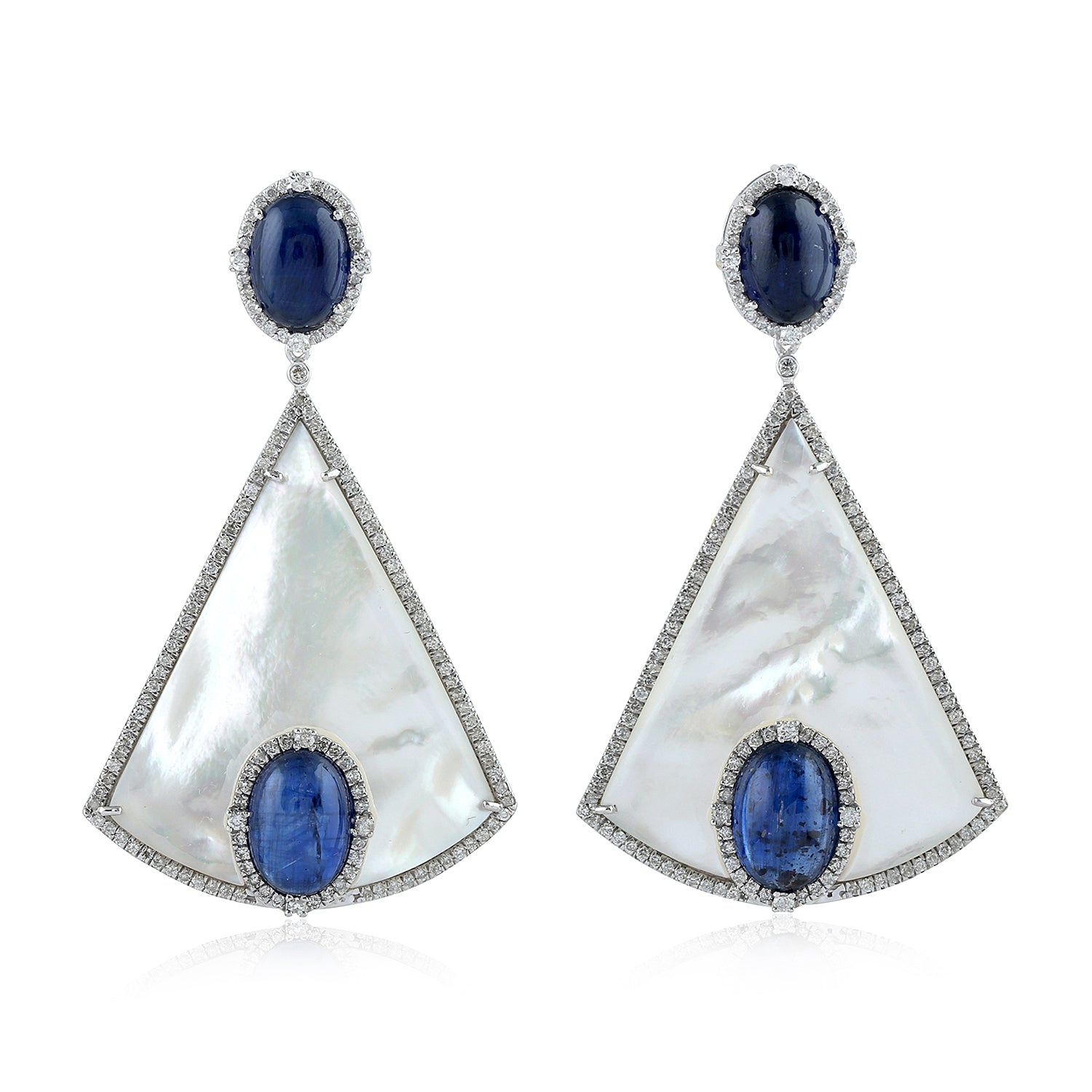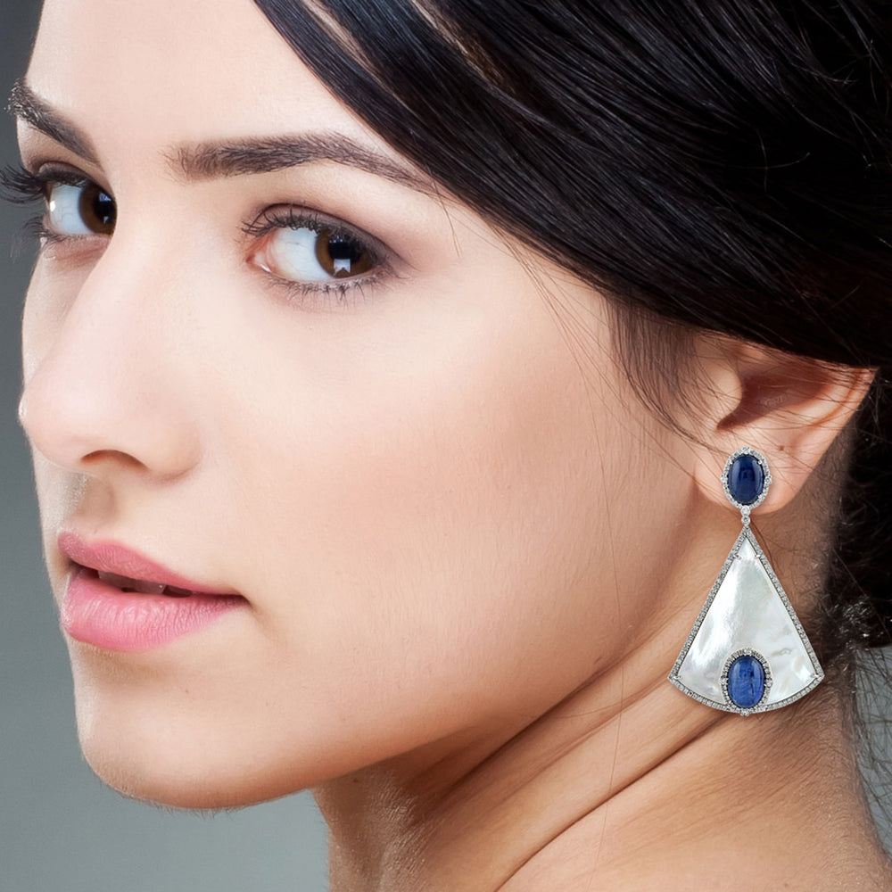 Oval Cut Kyanite Triangle MOP Pave Diamond Designer Dangler In 18K White Gold
