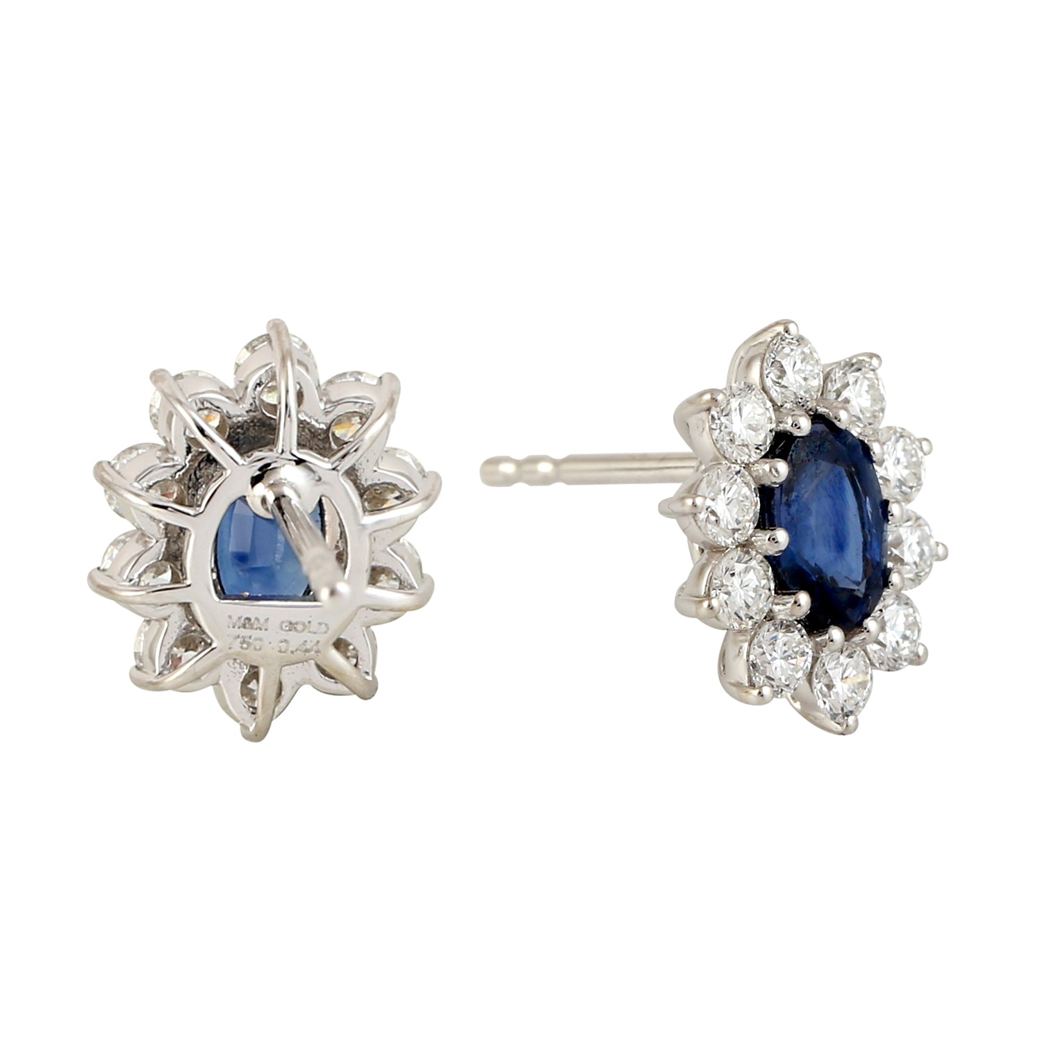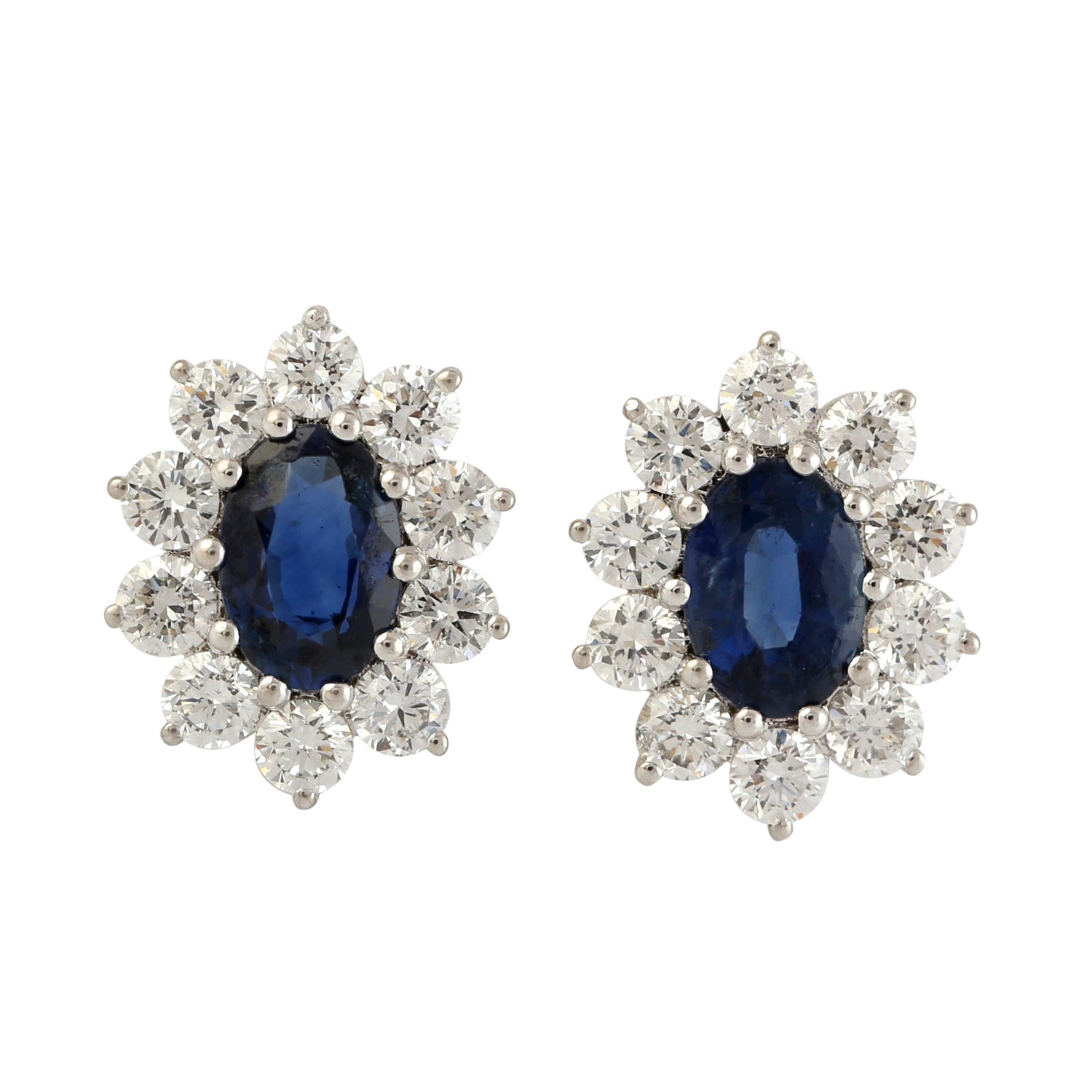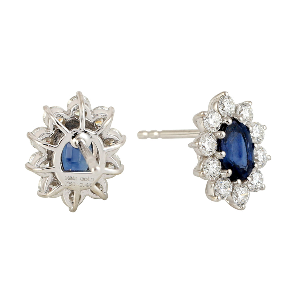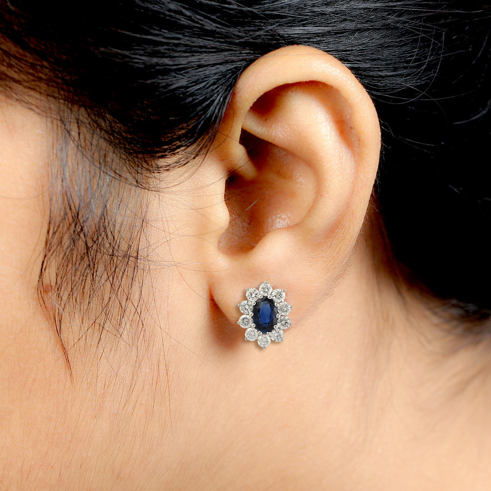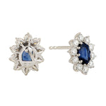 Oval Blue Sapphire Prong Set Diamond Stud Earrings in 18K White Gold – Elegant September Birthstone Jewelry