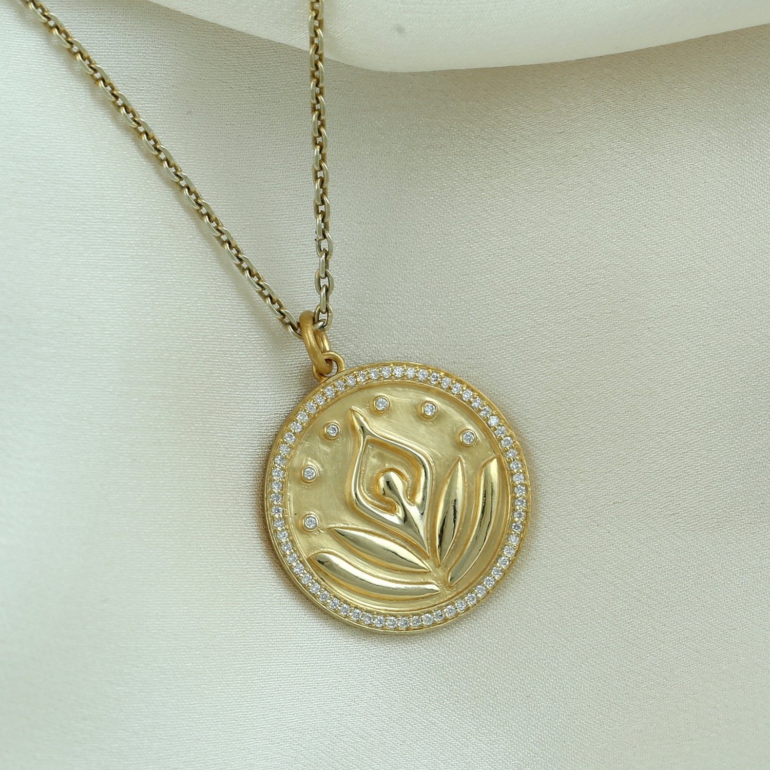 14K Yellow Gold Yoga Charm Pendant with Pave Diamonds – Meaningful Gift Jewelry