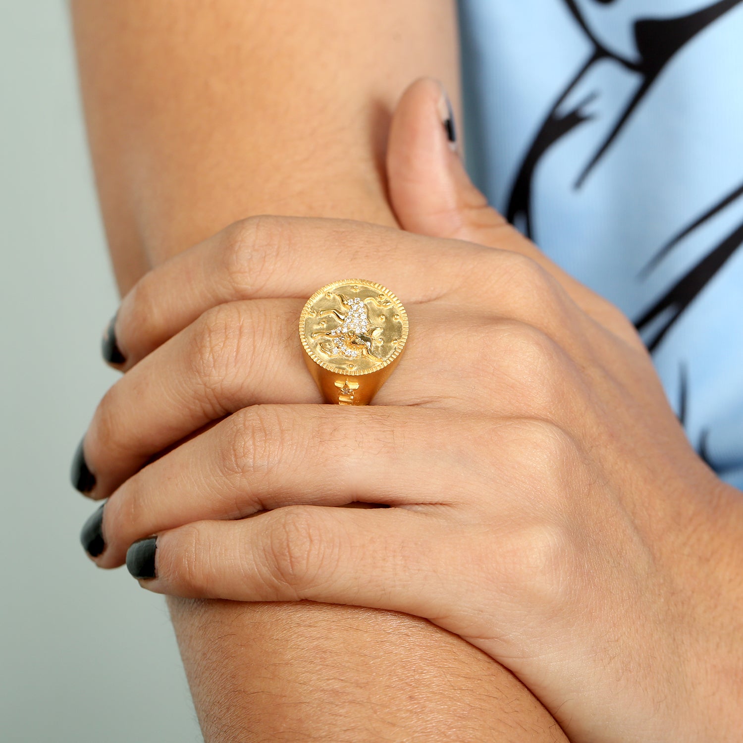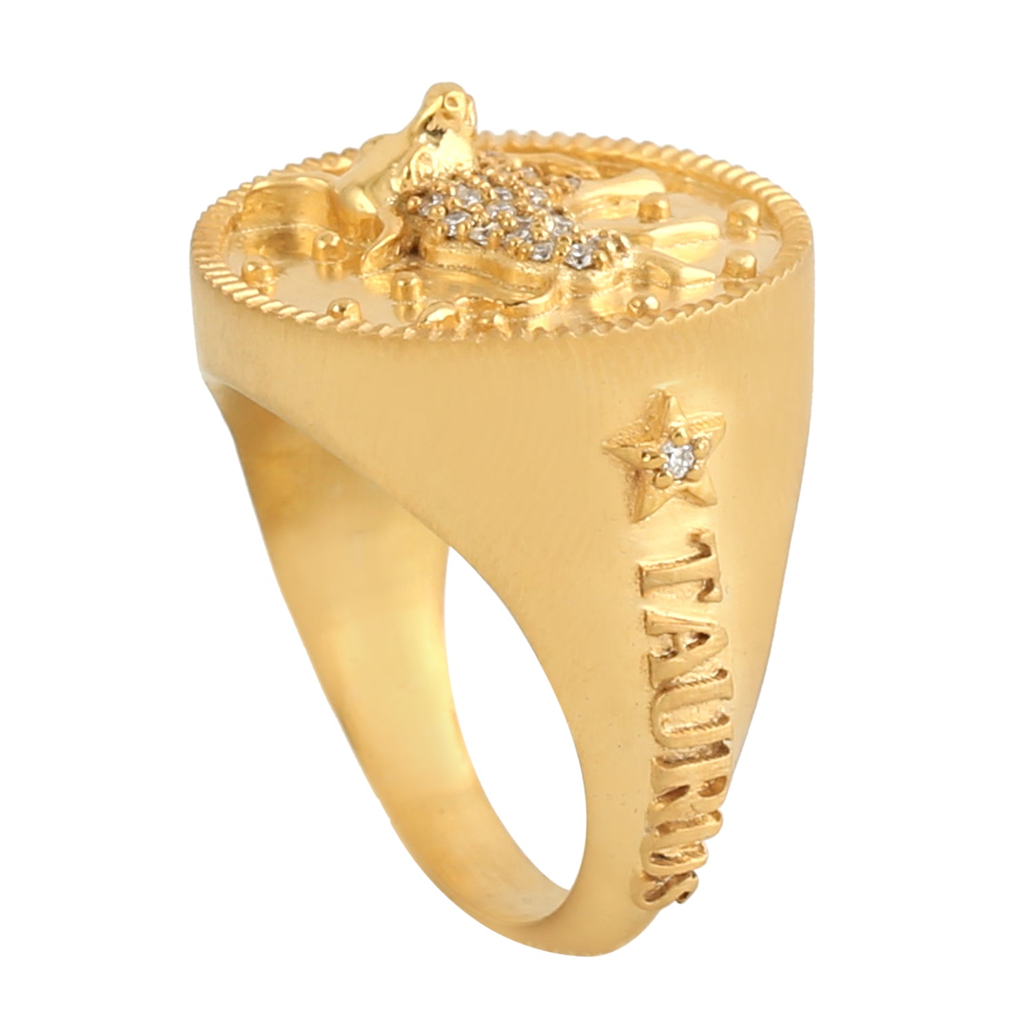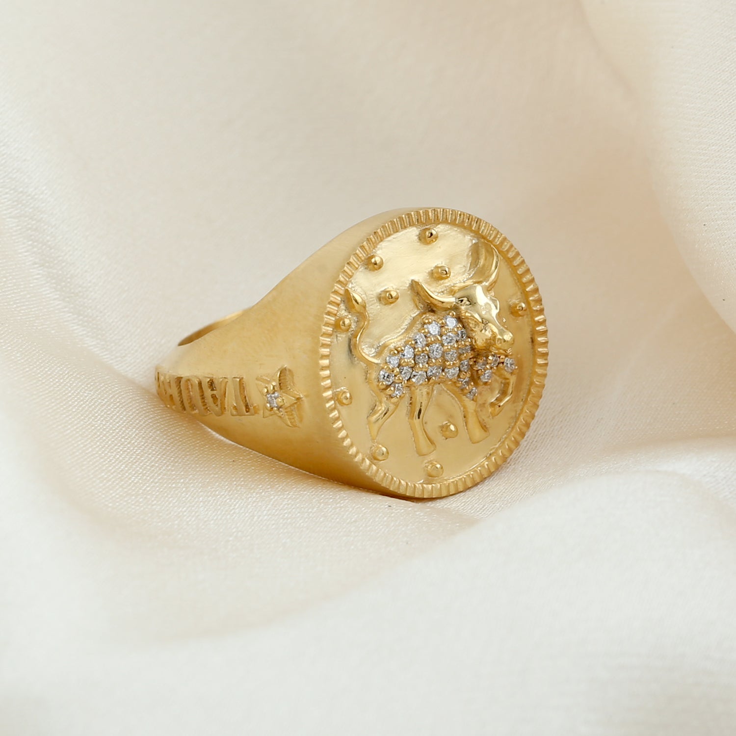 Pave Diamond Taurus Zodiac Signet Ring in 14k Yellow Gold For Gifts