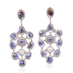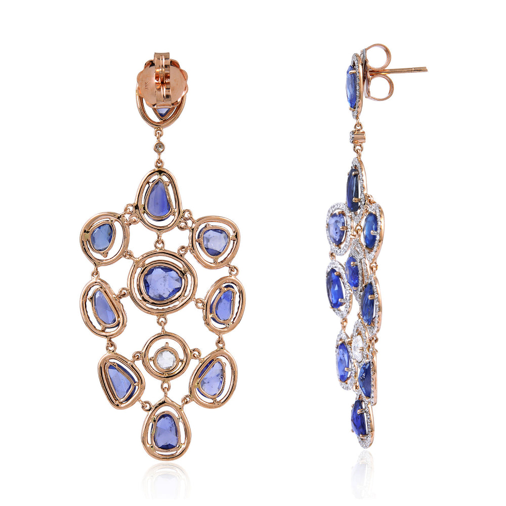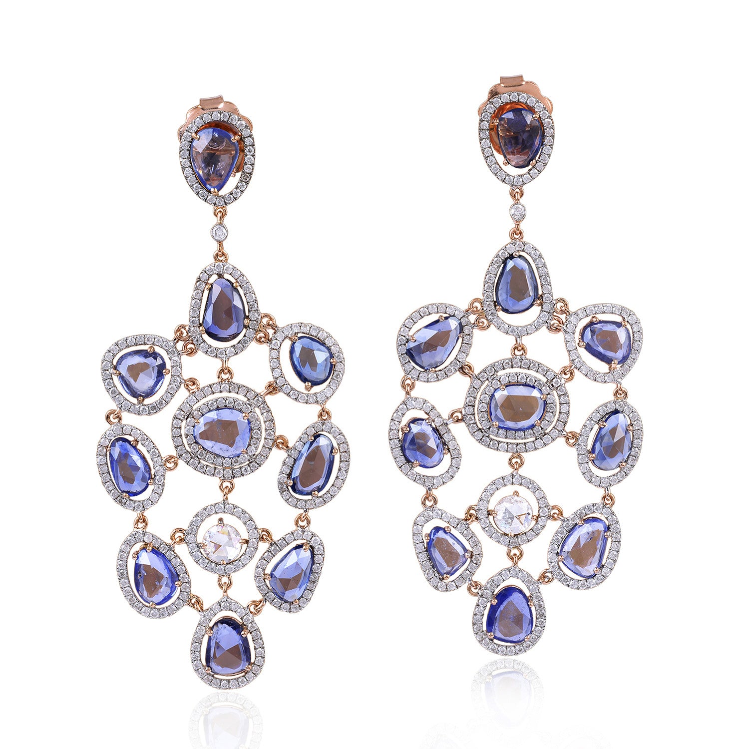 Slice Blue Sapphire Chandelier Earrings with Pave Diamonds in Rose Gold
