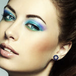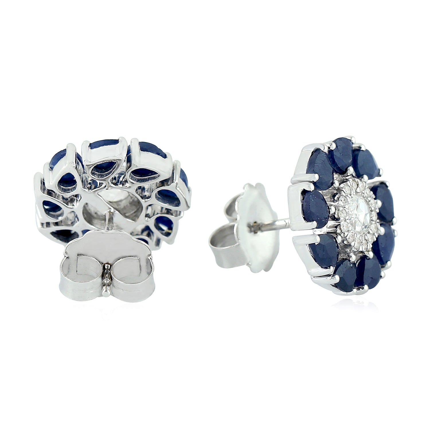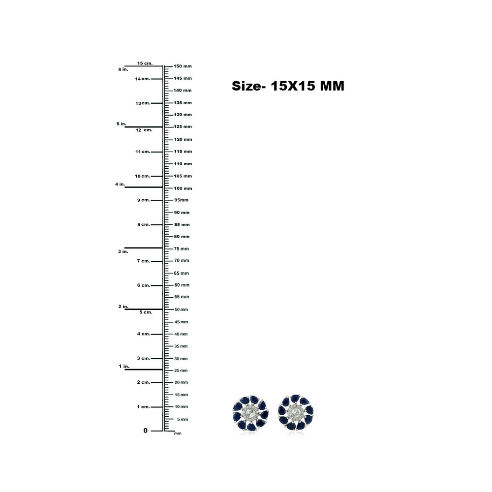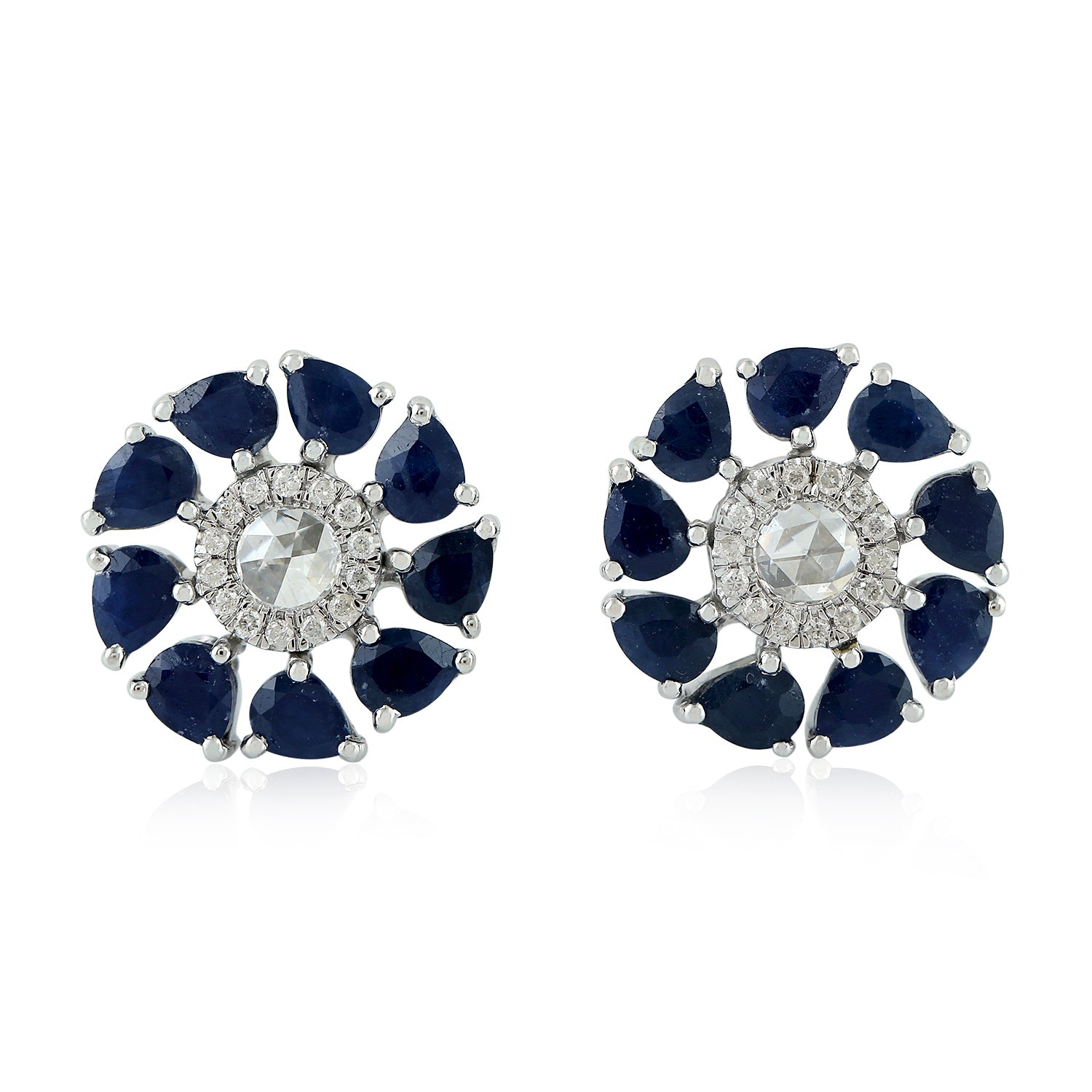 Pear Cut Blue Sapphire Rose Cut Diamond Stud Earrings 18K White Gold