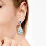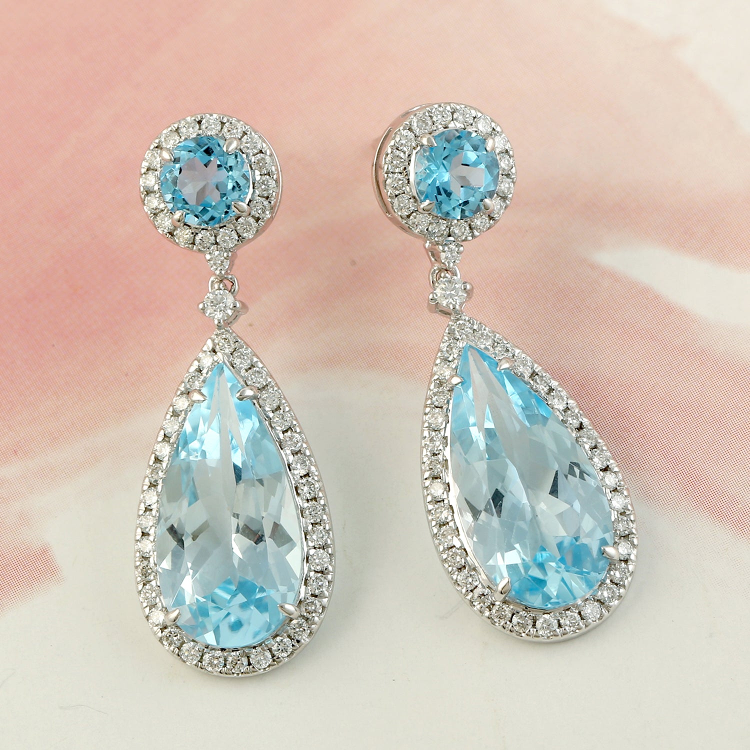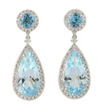 Pear Cut Blue Topaz Pave Diamond Drop Dangle Earrings In 18k White Gold
