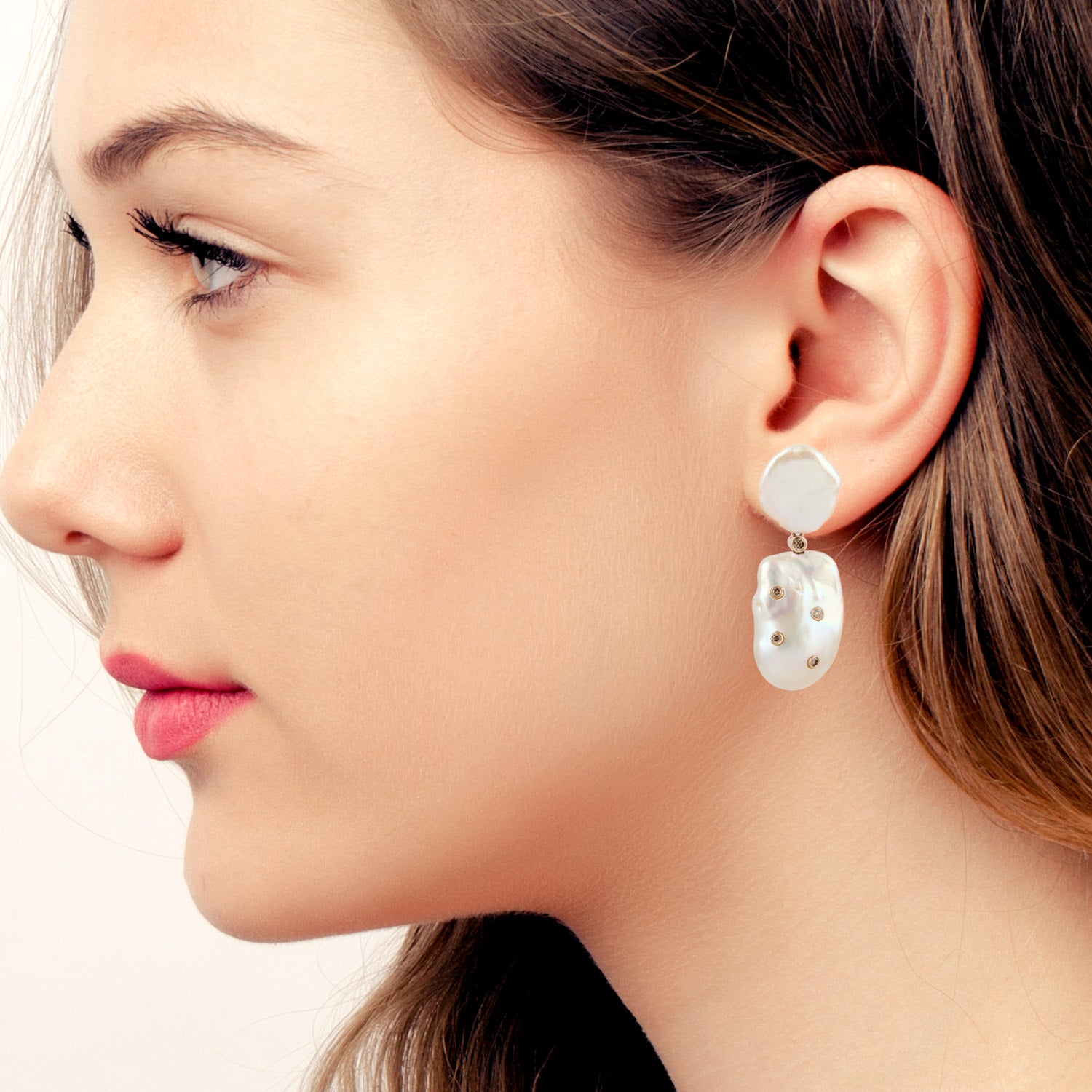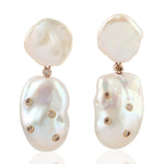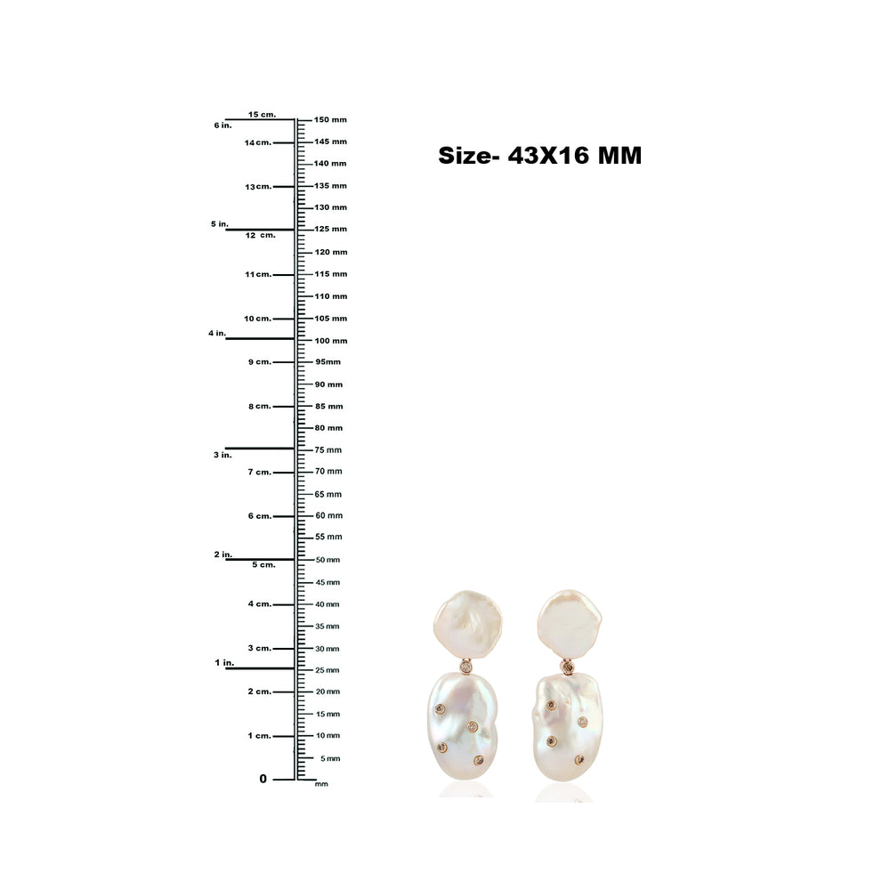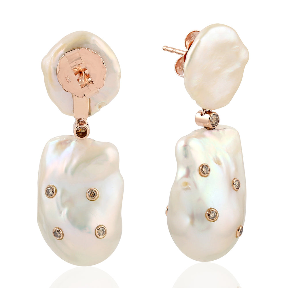 18K Rose Gold Dangle Earrings with Chinese Gemstone, Pearl & Pave Diamonds – Artistic Luxury for Her