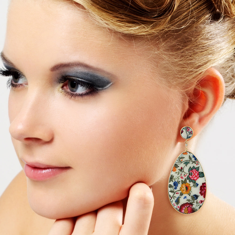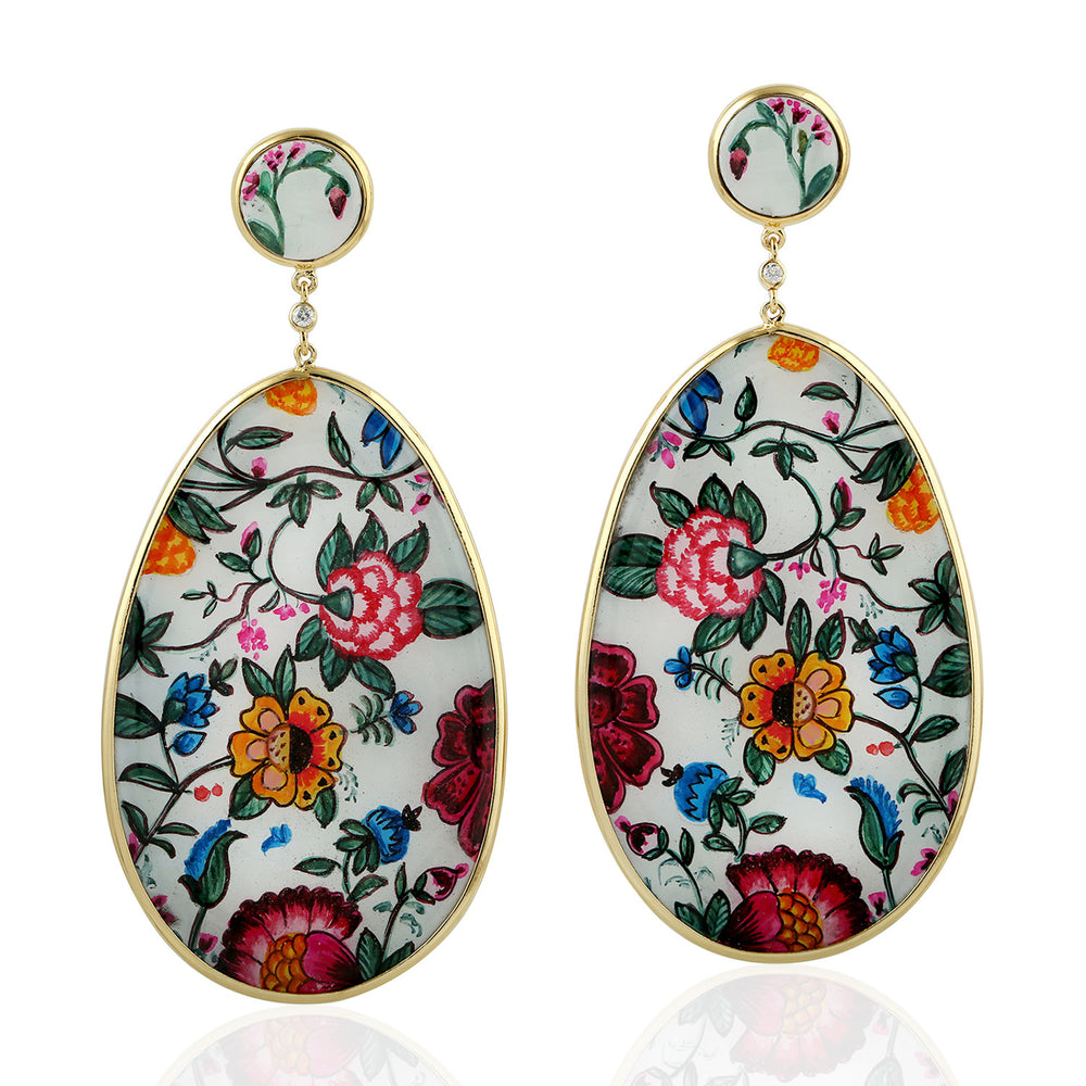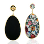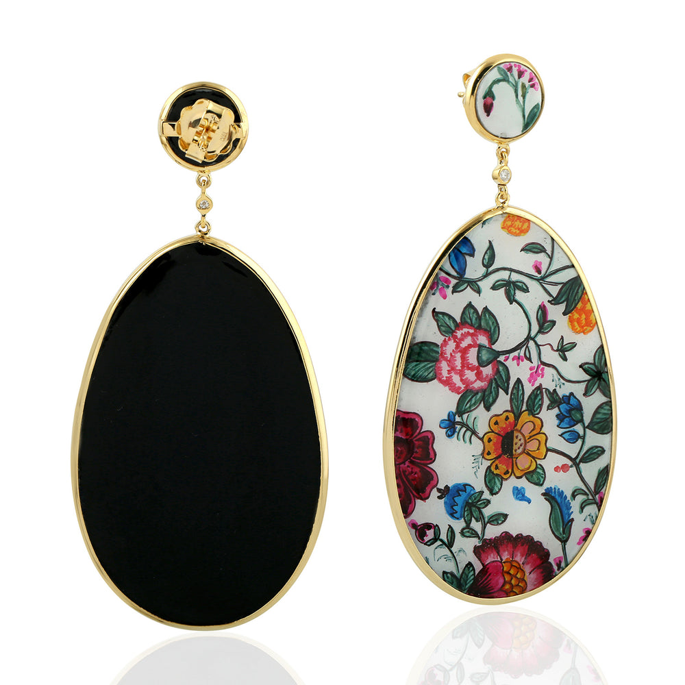 Picture Bakelite Enamel Prong Diamond Dangle Earrings In Yellow Gold