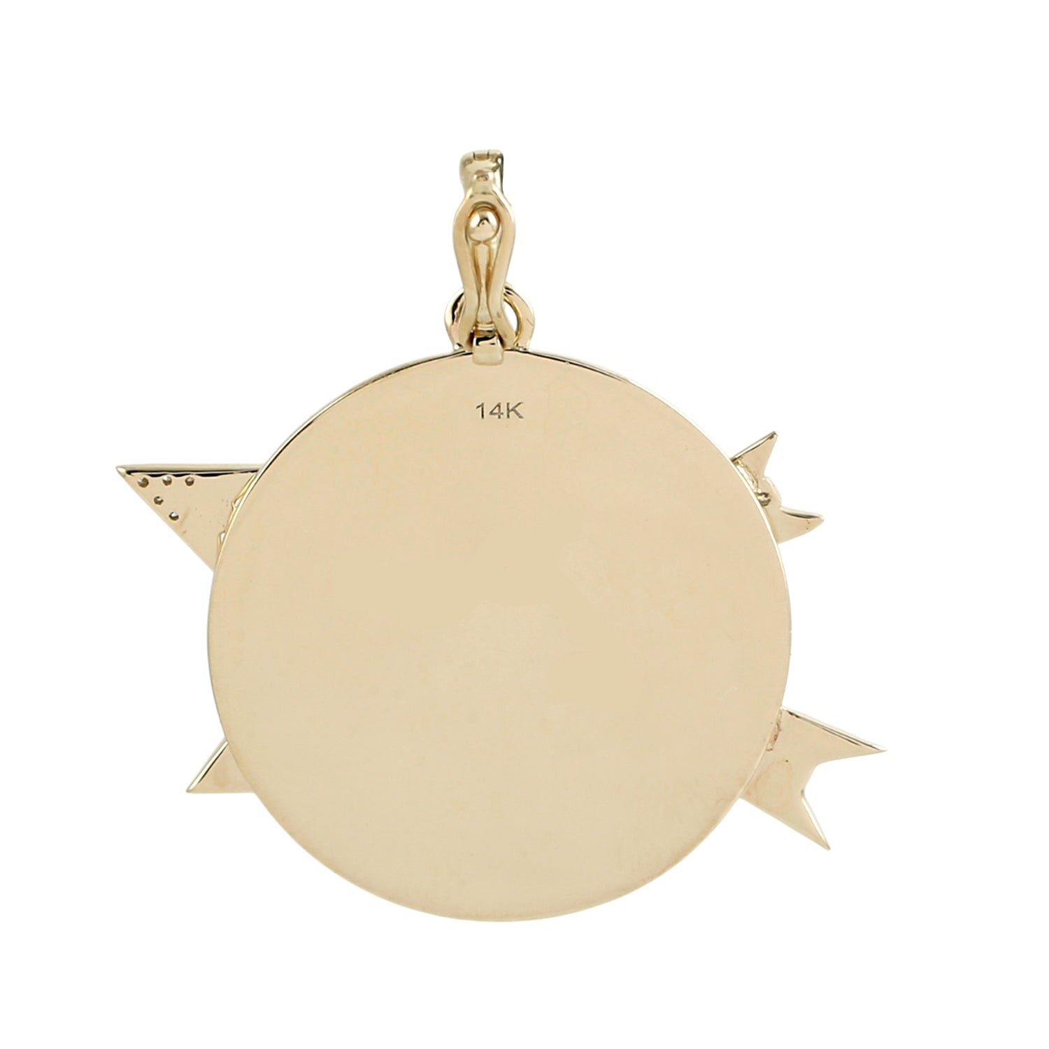 Pink Enamel Compass Arrow Pendant with Diamonds in 14K Yellow Gold