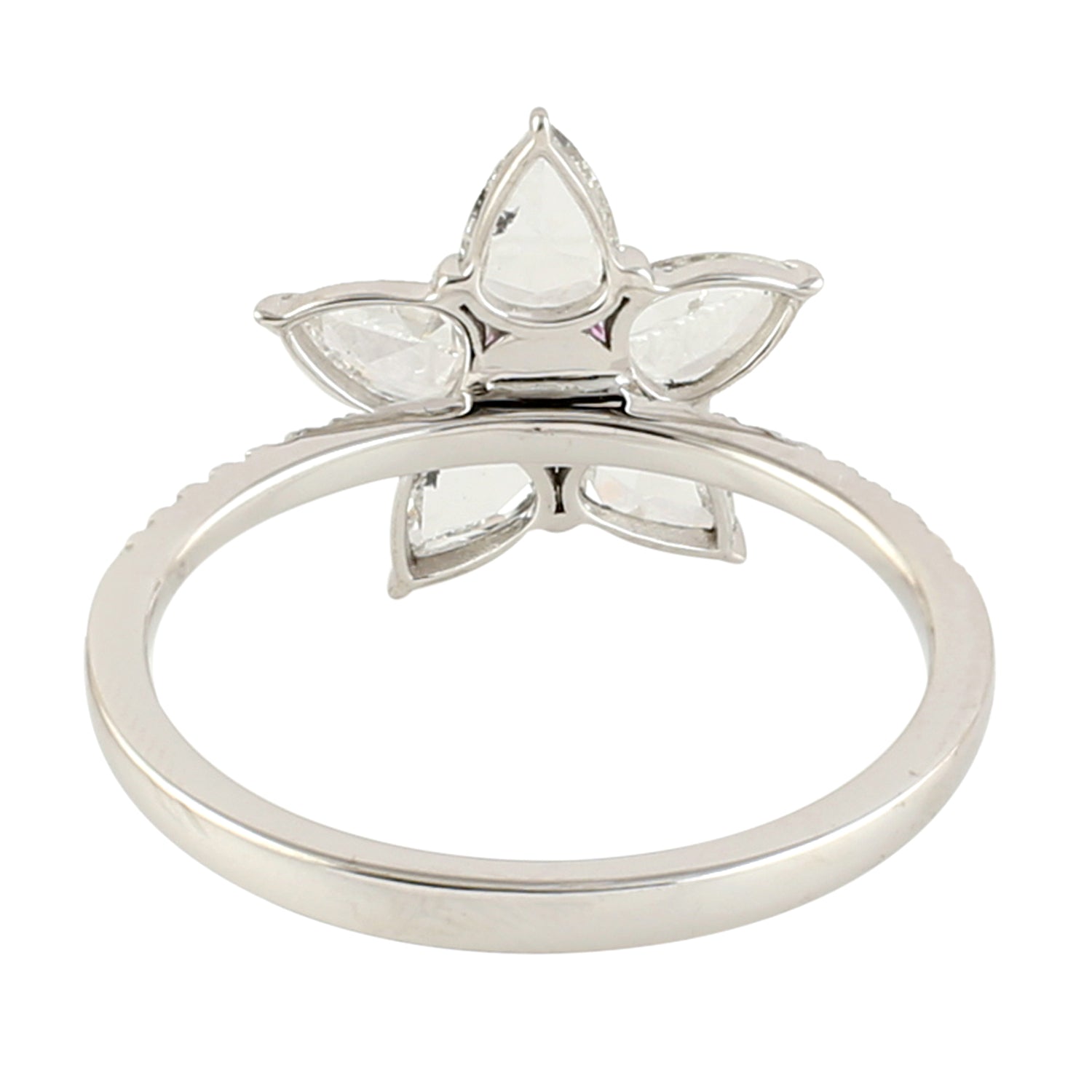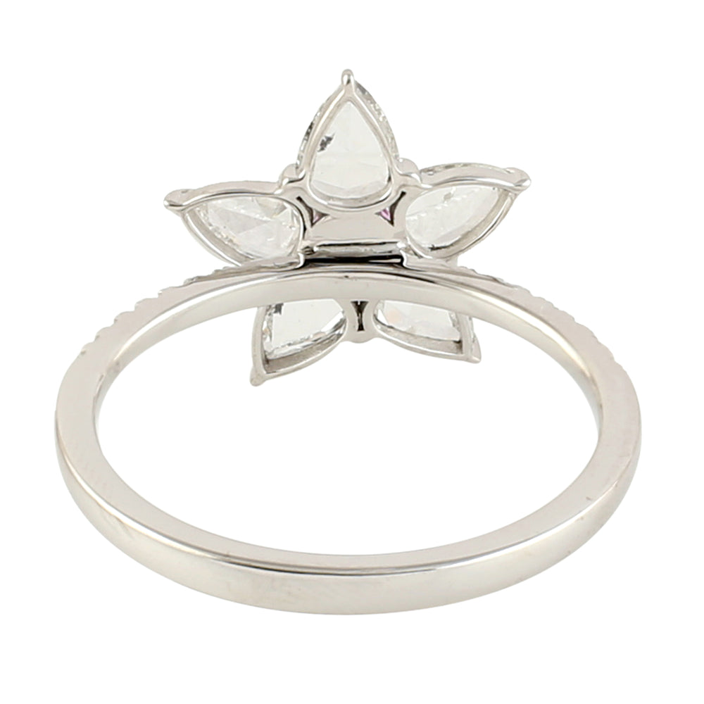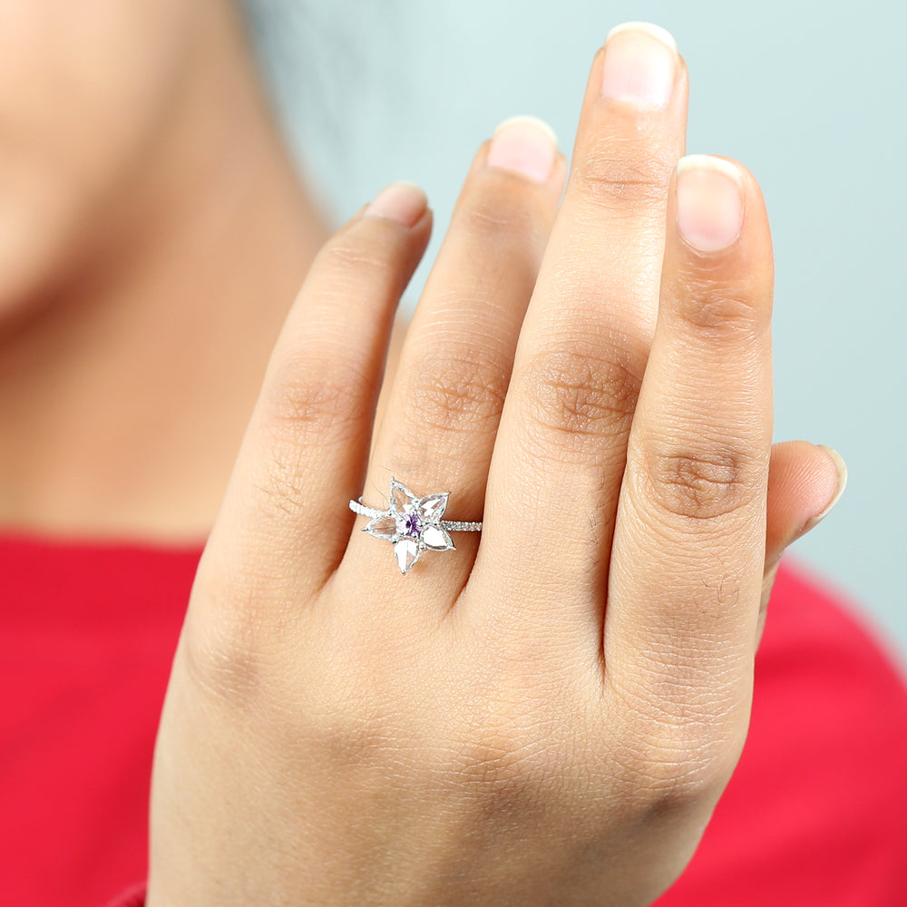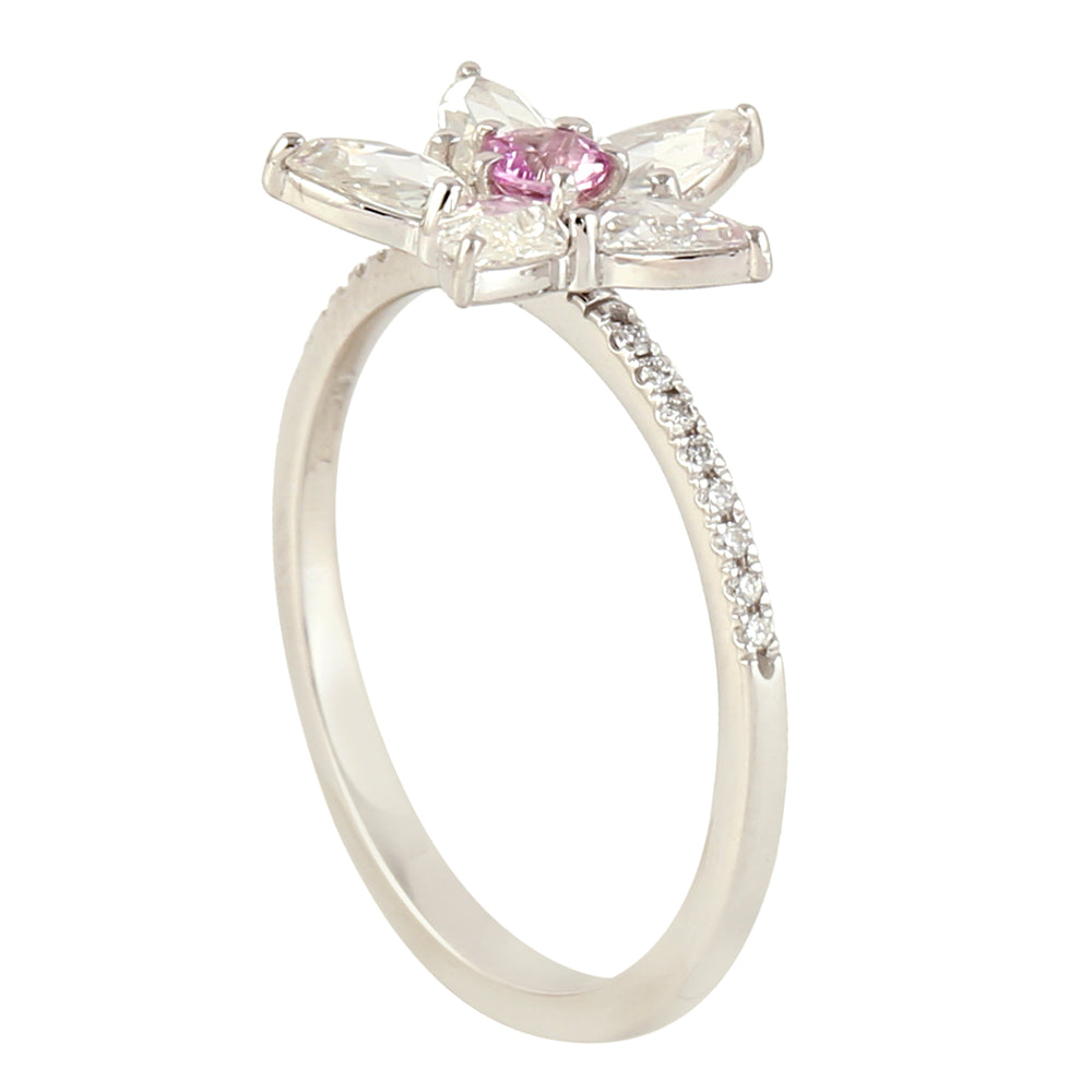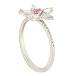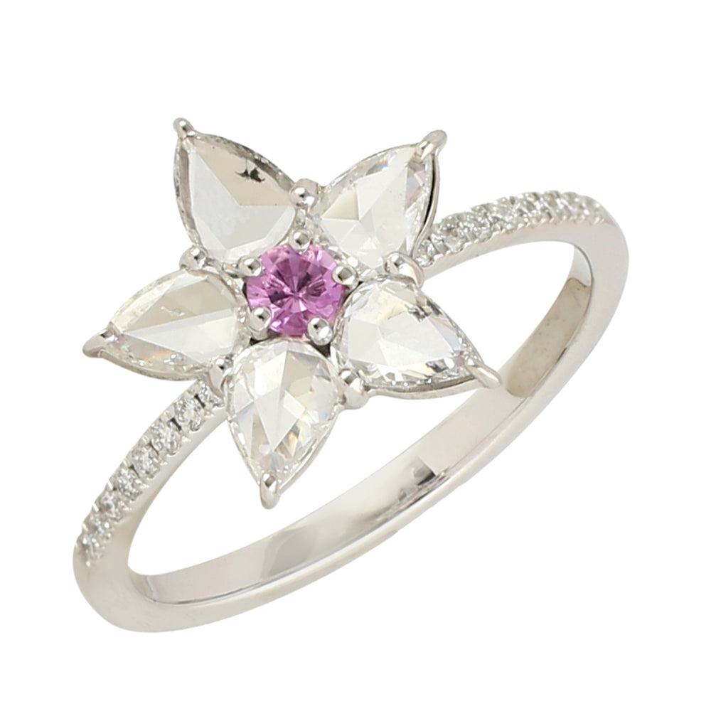 Pink Sapphire Rose Cut Diamond Daisy Flower Ring in 18K White Gold