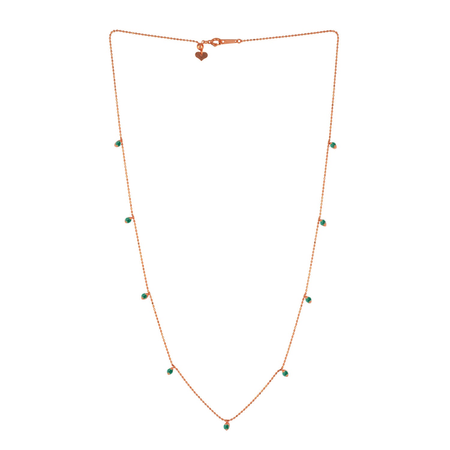 Prong Emerald Gemstone Beads In 18K Yellow Gold Princess Necklace For Her