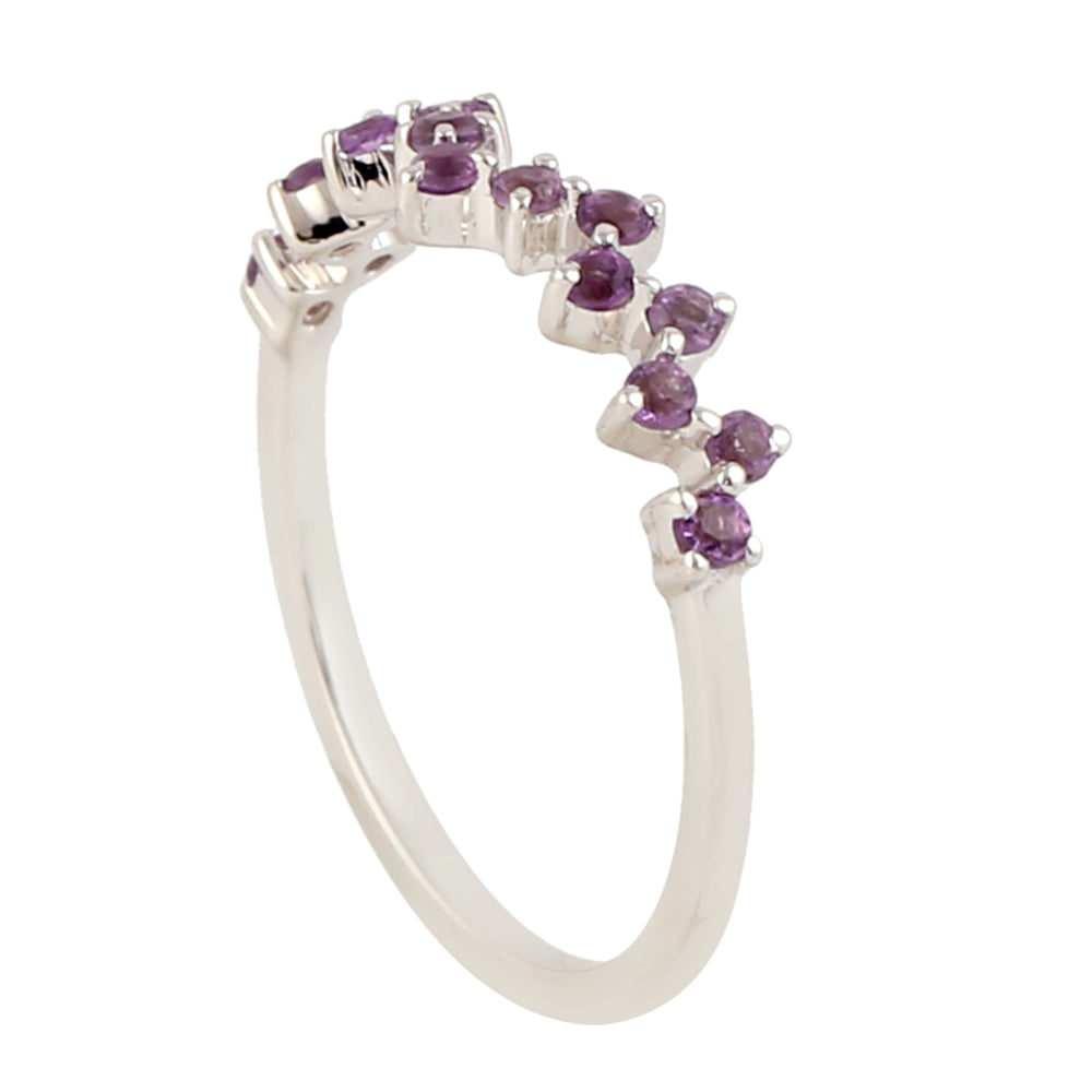 Prong Amethyst Gemstone Designer Ring In 10K White Gold