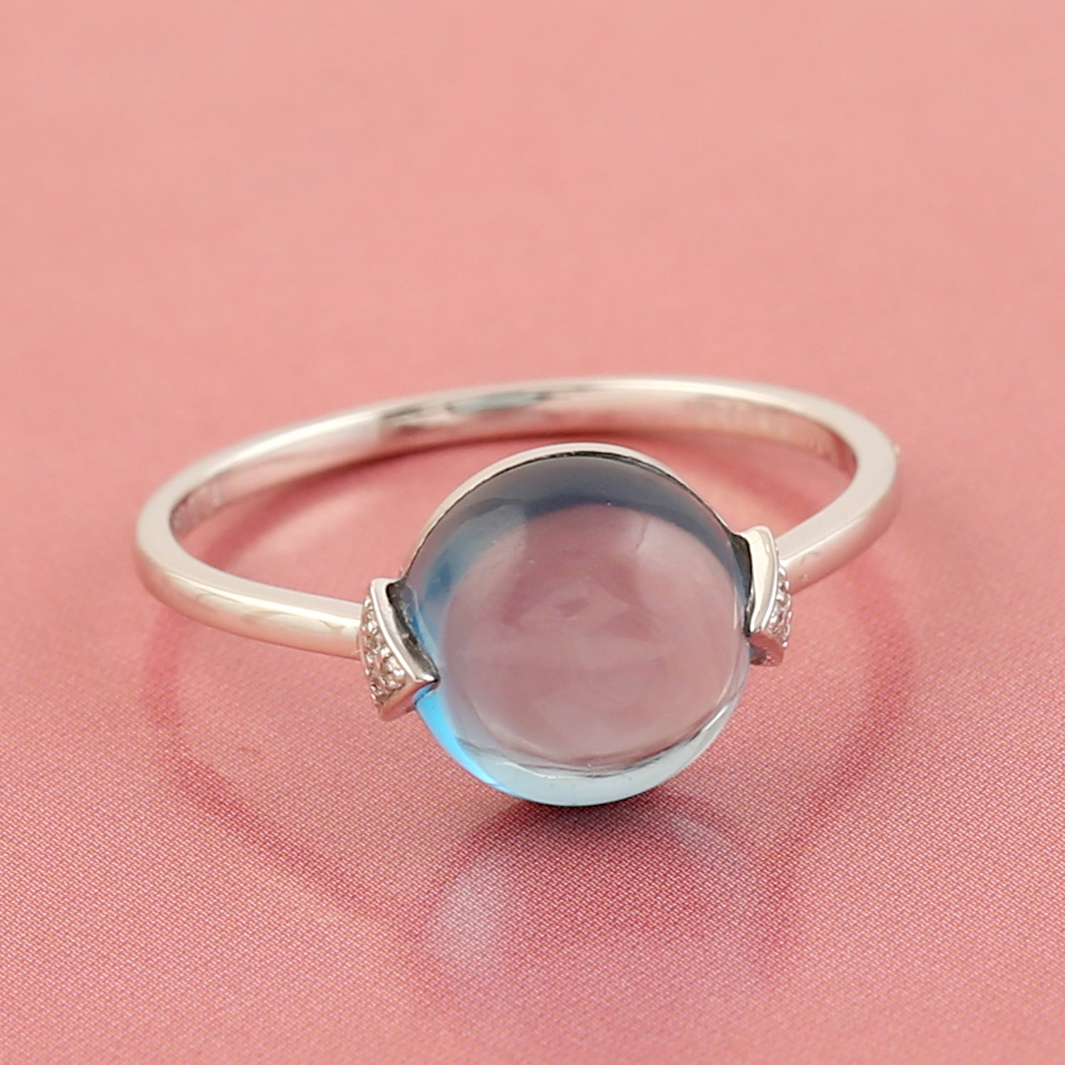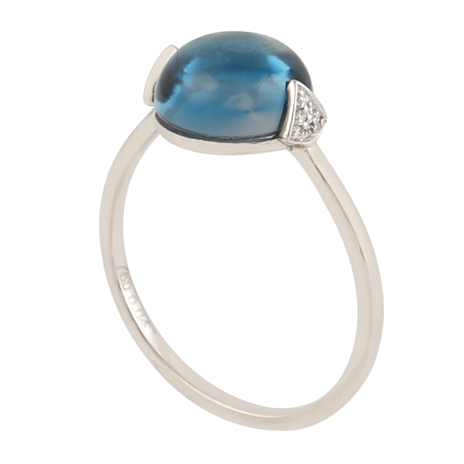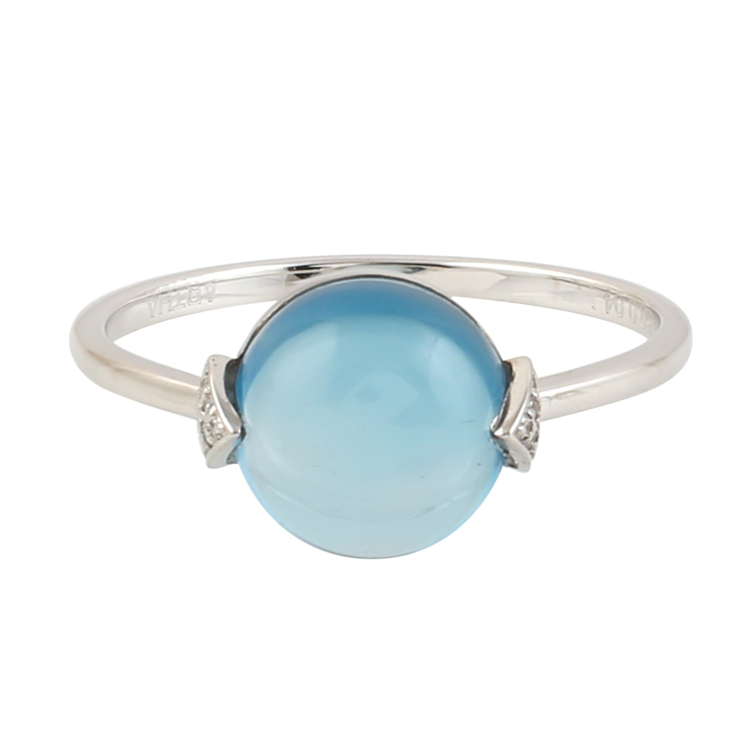 Blue Topaz Gemstone Pave Diamond In 18k White Gold Designer Ring For Her