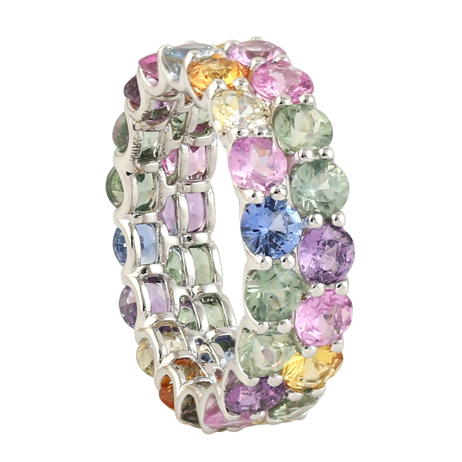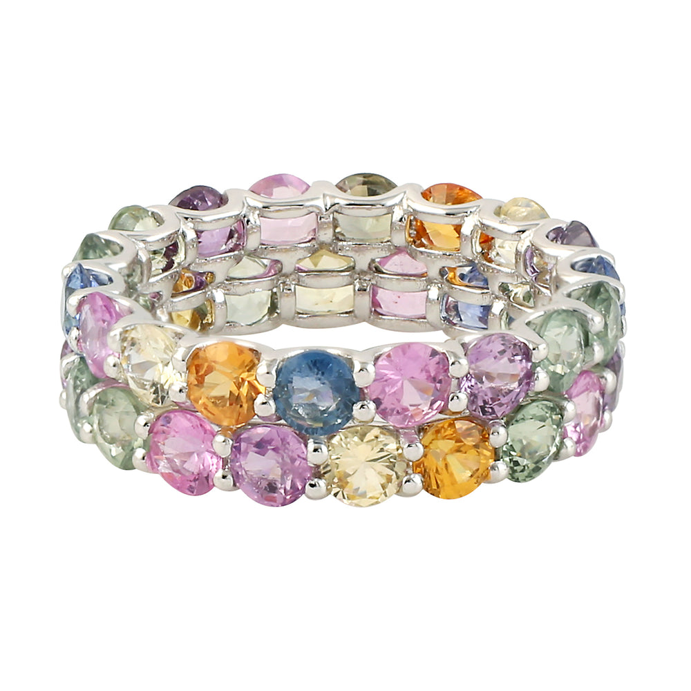 Prong Multicolor Sapphire Band Ring in 18K White Gold – Vibrant Fine Jewelry for Her