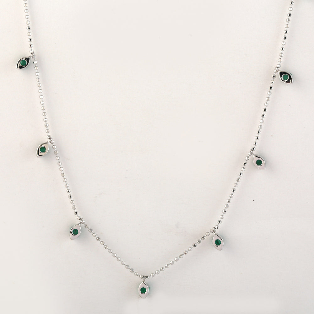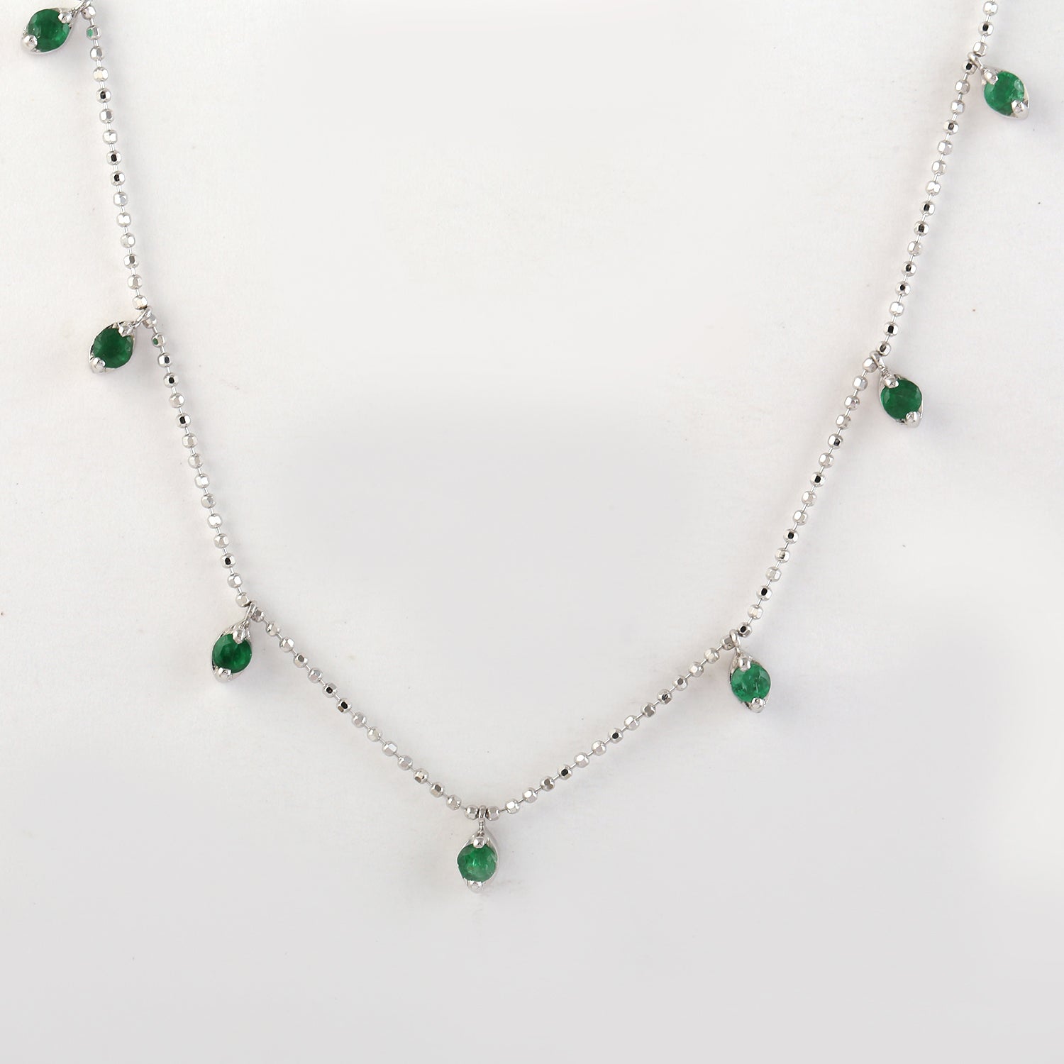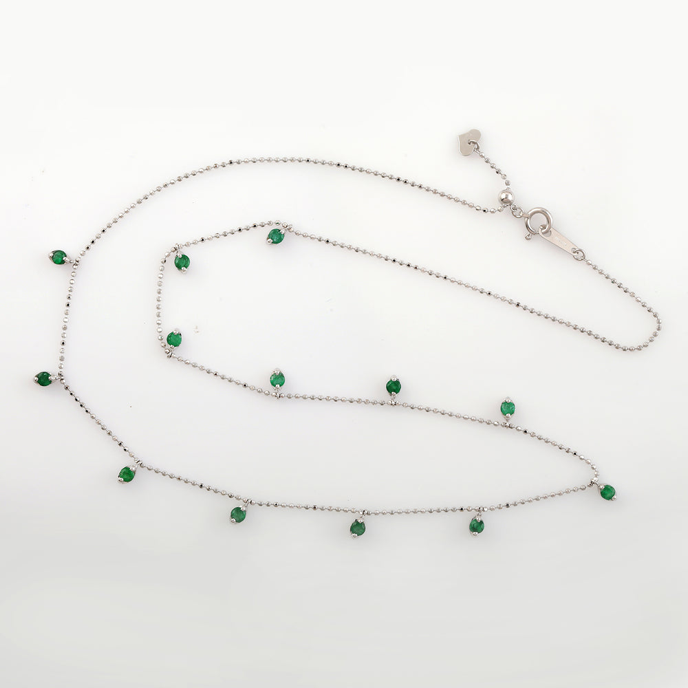 Prong Set Emerald Bead Necklace in 18K White Gold – Dainty Dot Ball Chain Jewelry for Her