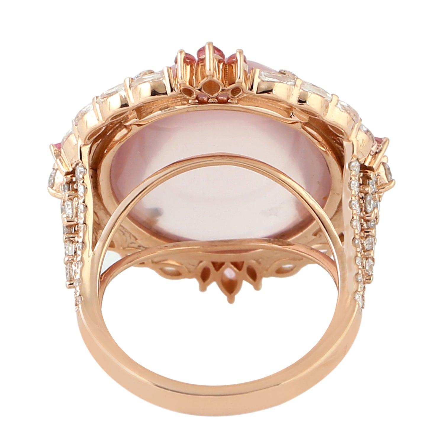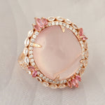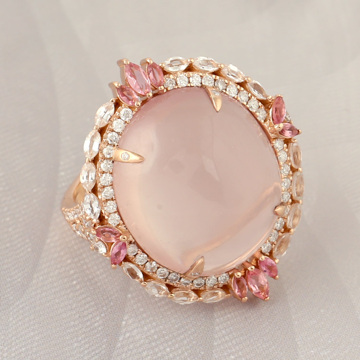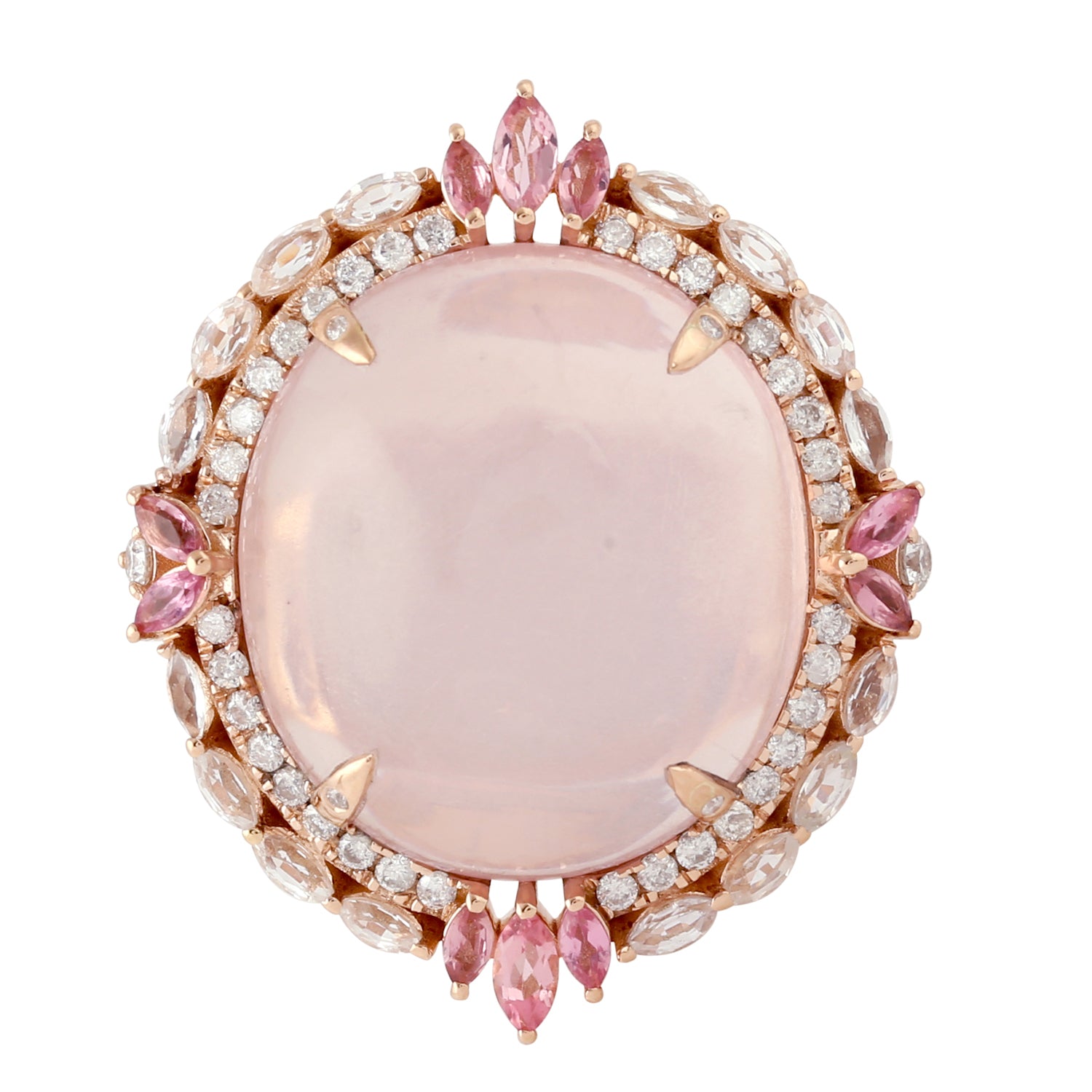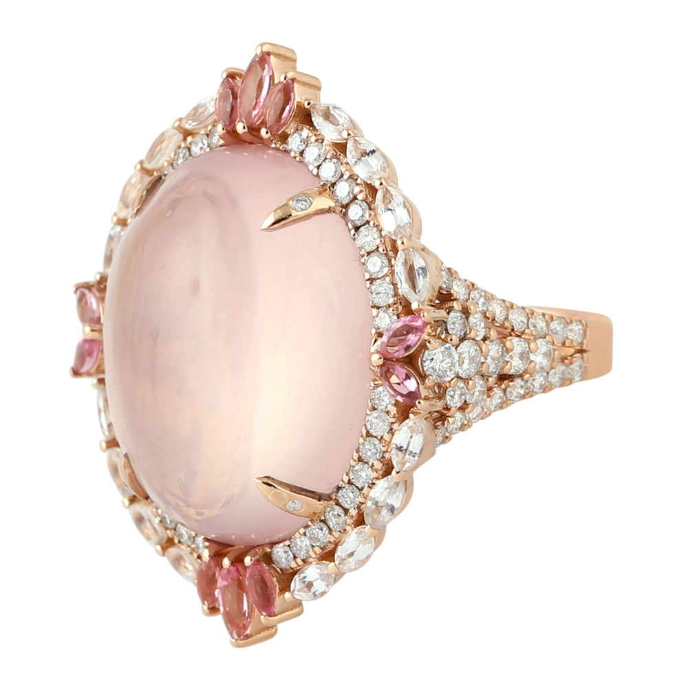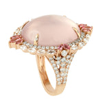 Pink Quartz White Sapphire Pink Tourmaline Pave Diamond Cocktail Ring In Rose Gold