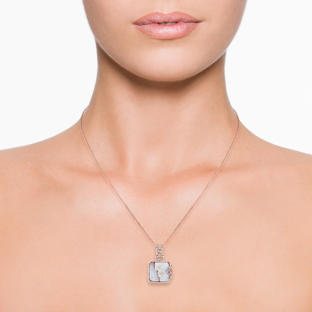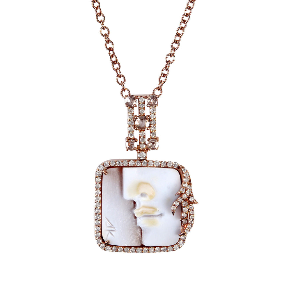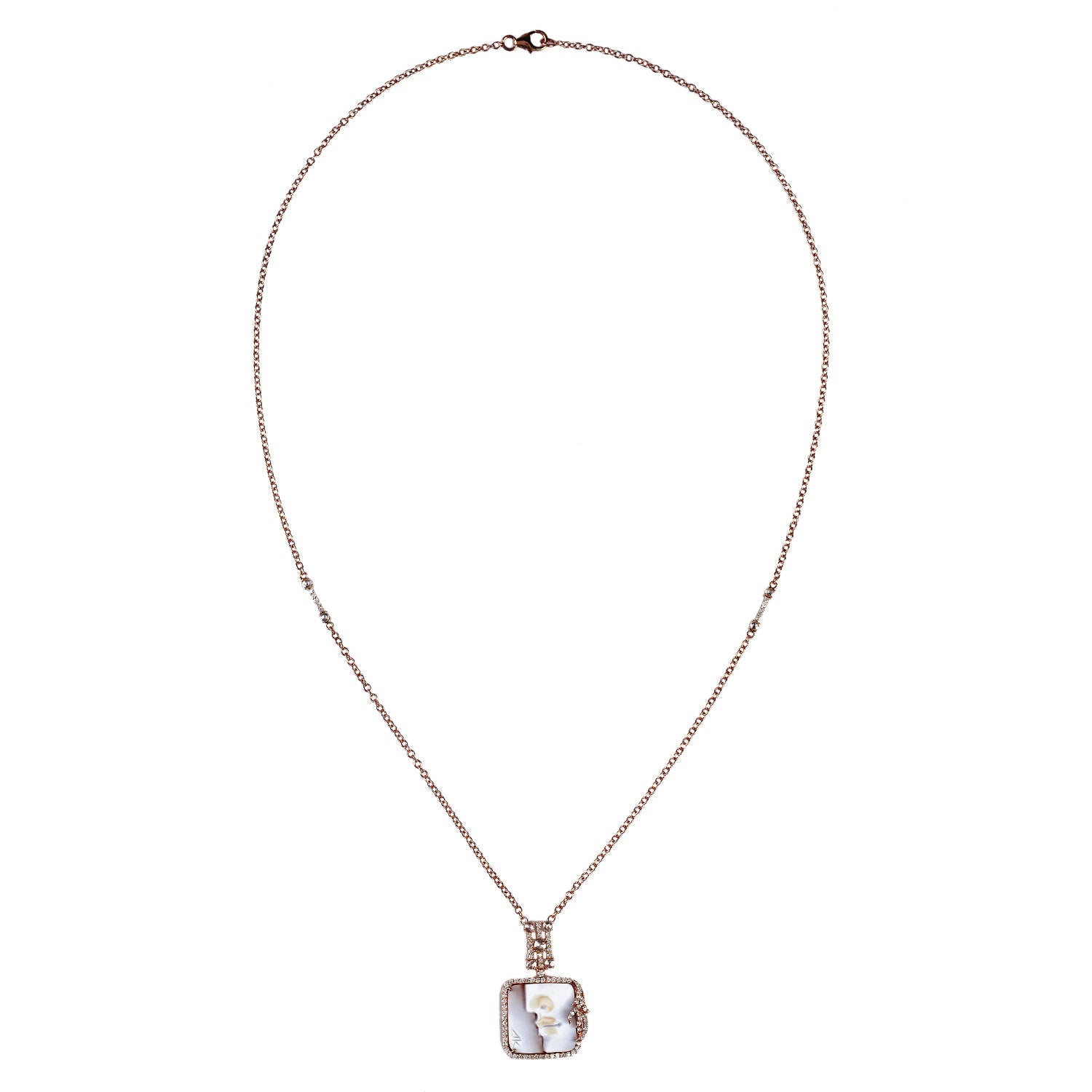 Shell Cameos Pave Diamond Choker Necklace Handmade In 18k Rose Gold
