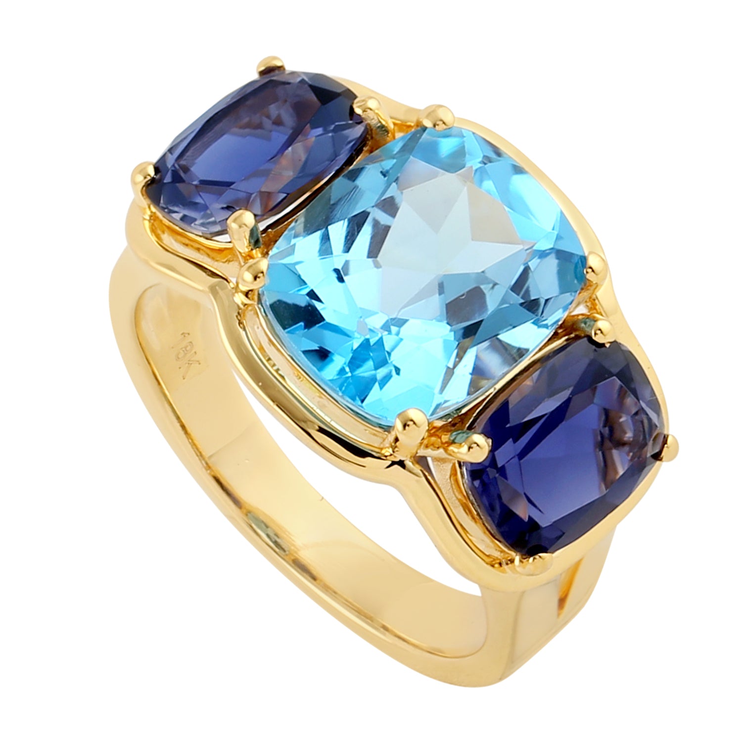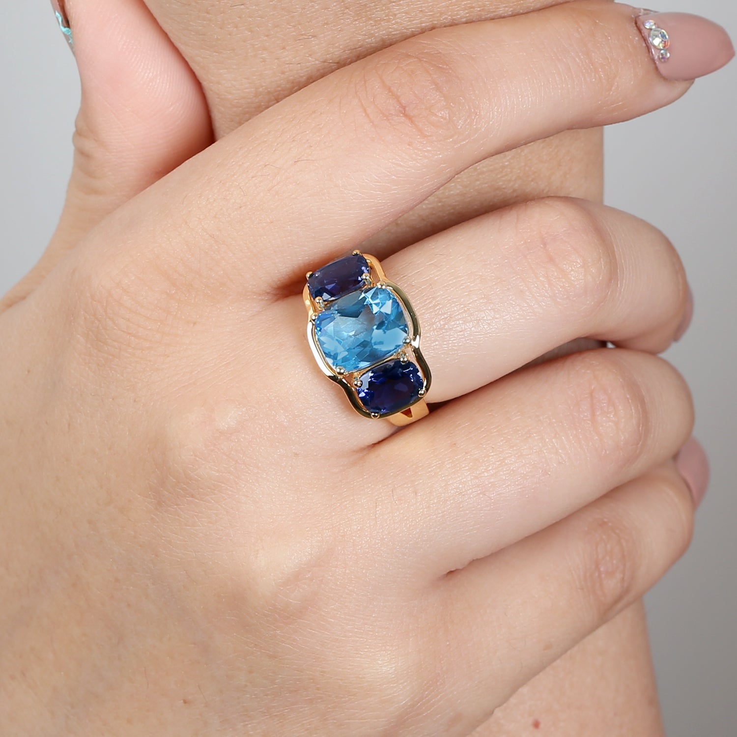 Product Code - ING-10497Size- US-7Gold Gemstones Weight- Iolite(2.51 Cts) ,Topaz (5.21 Cts)Gross Weight- 8.684Gms