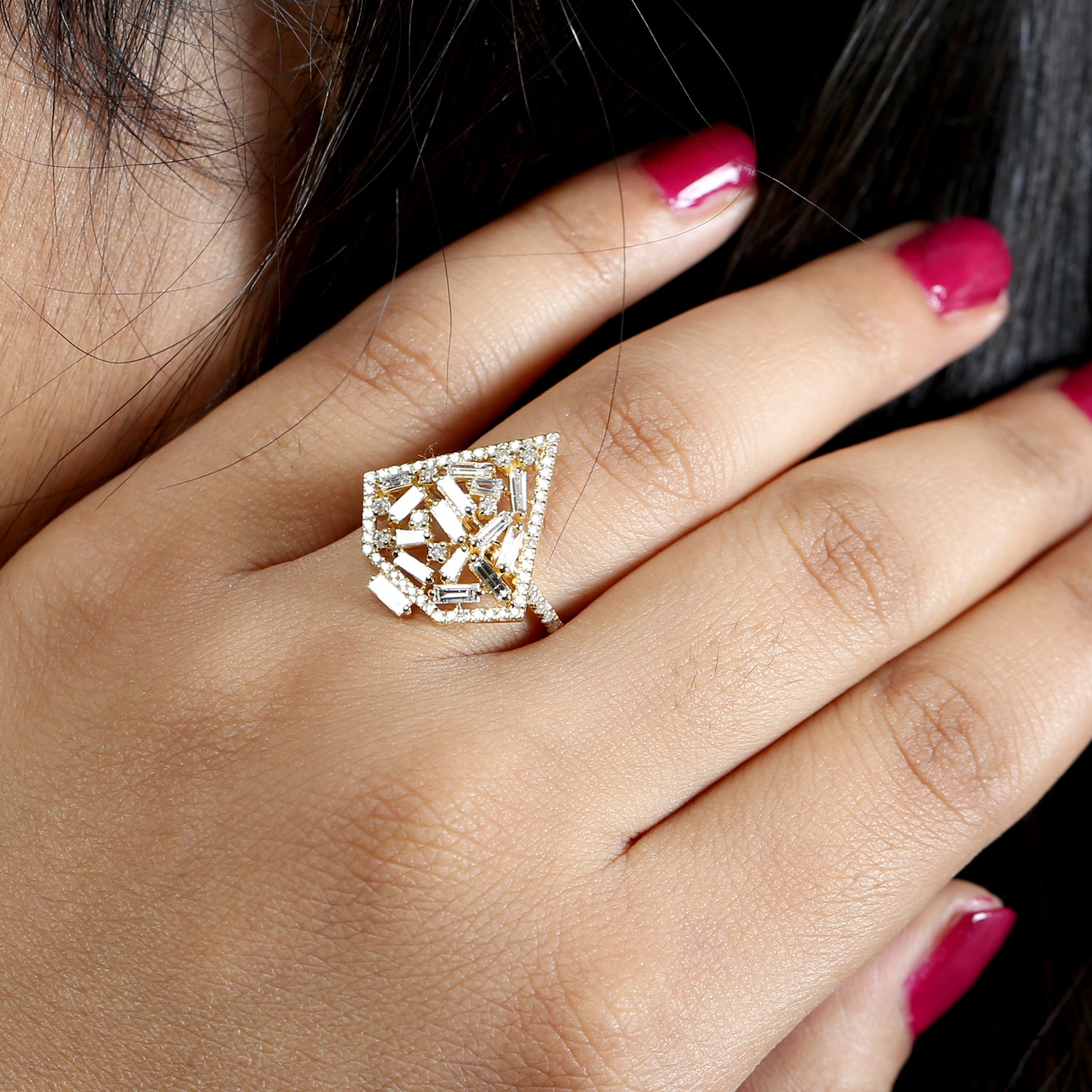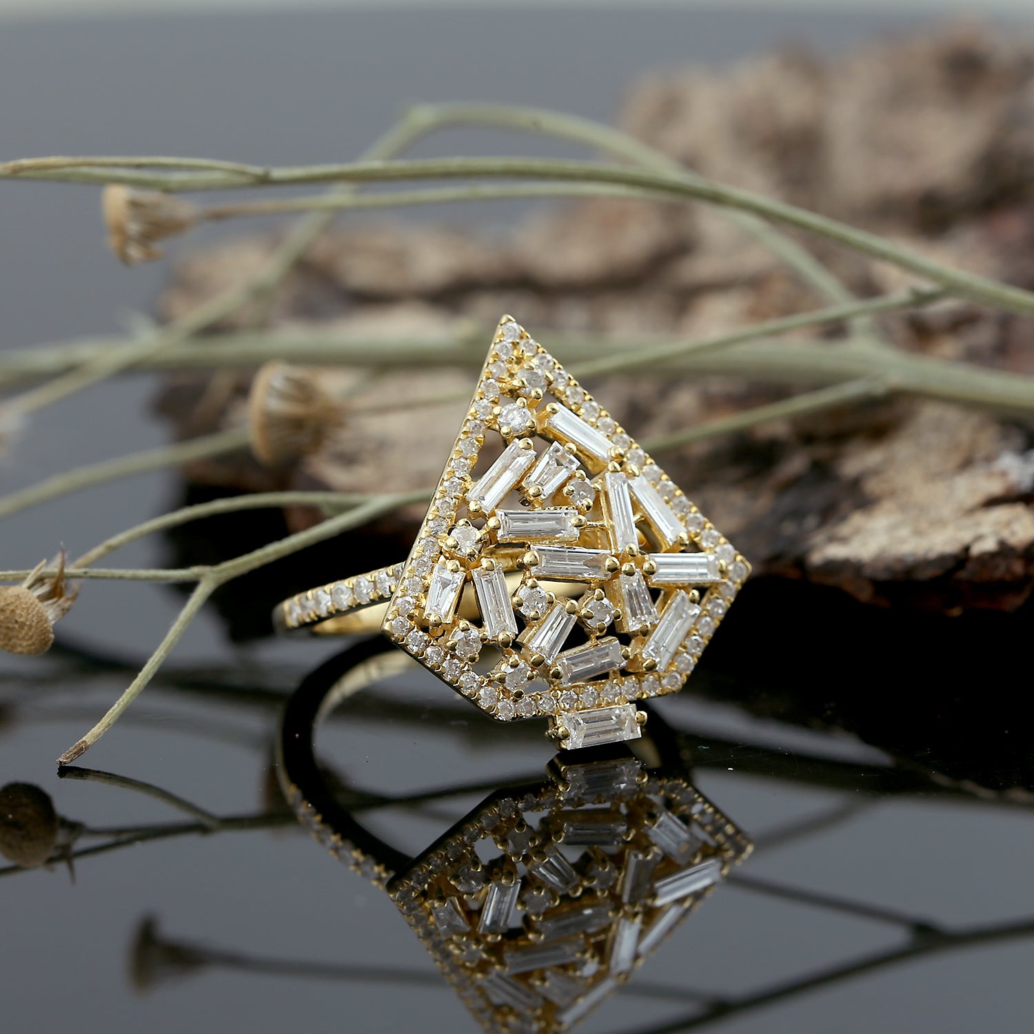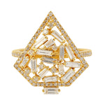 Tapered Baguette Diamond Geometric Ring in 18K Yellow Gold – Modern Gift for Her