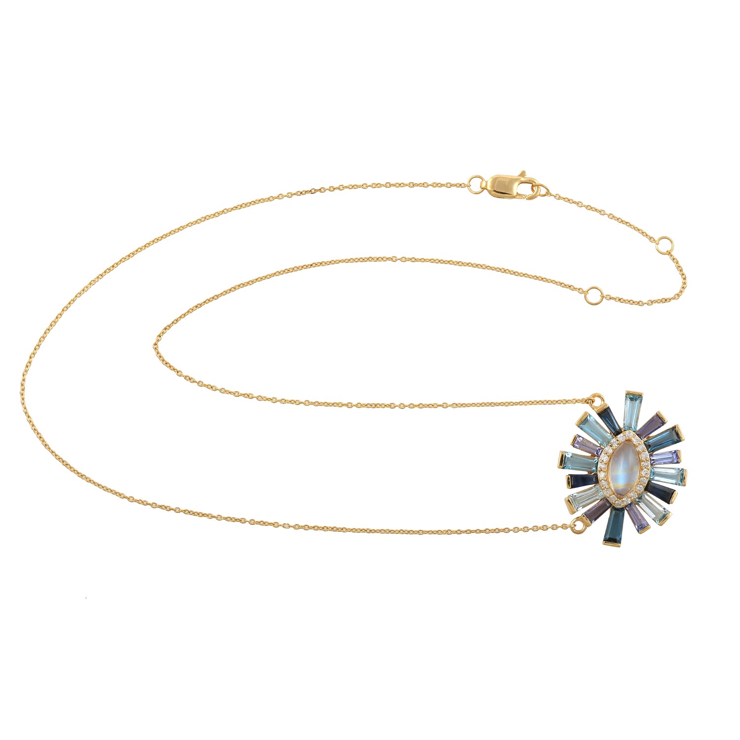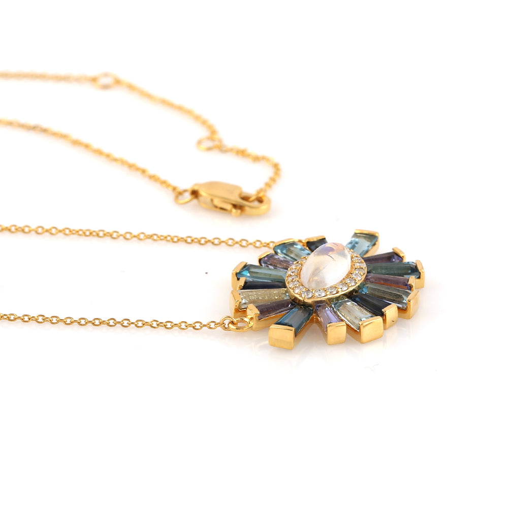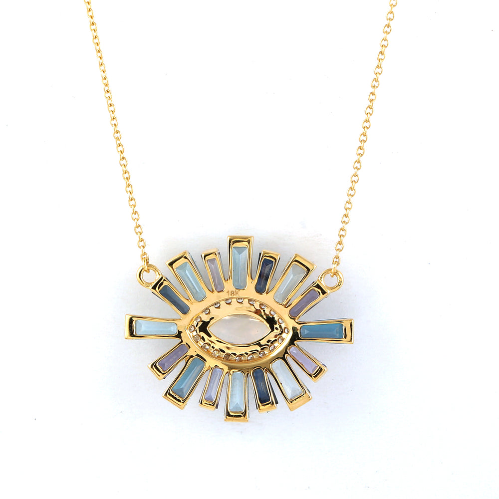 Tapered Baguette Iolite Moonstone Pave Diamond Chain Necklace In 18k Yellow Gold
