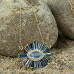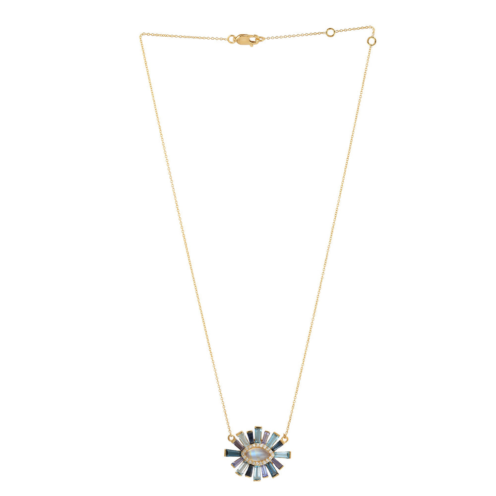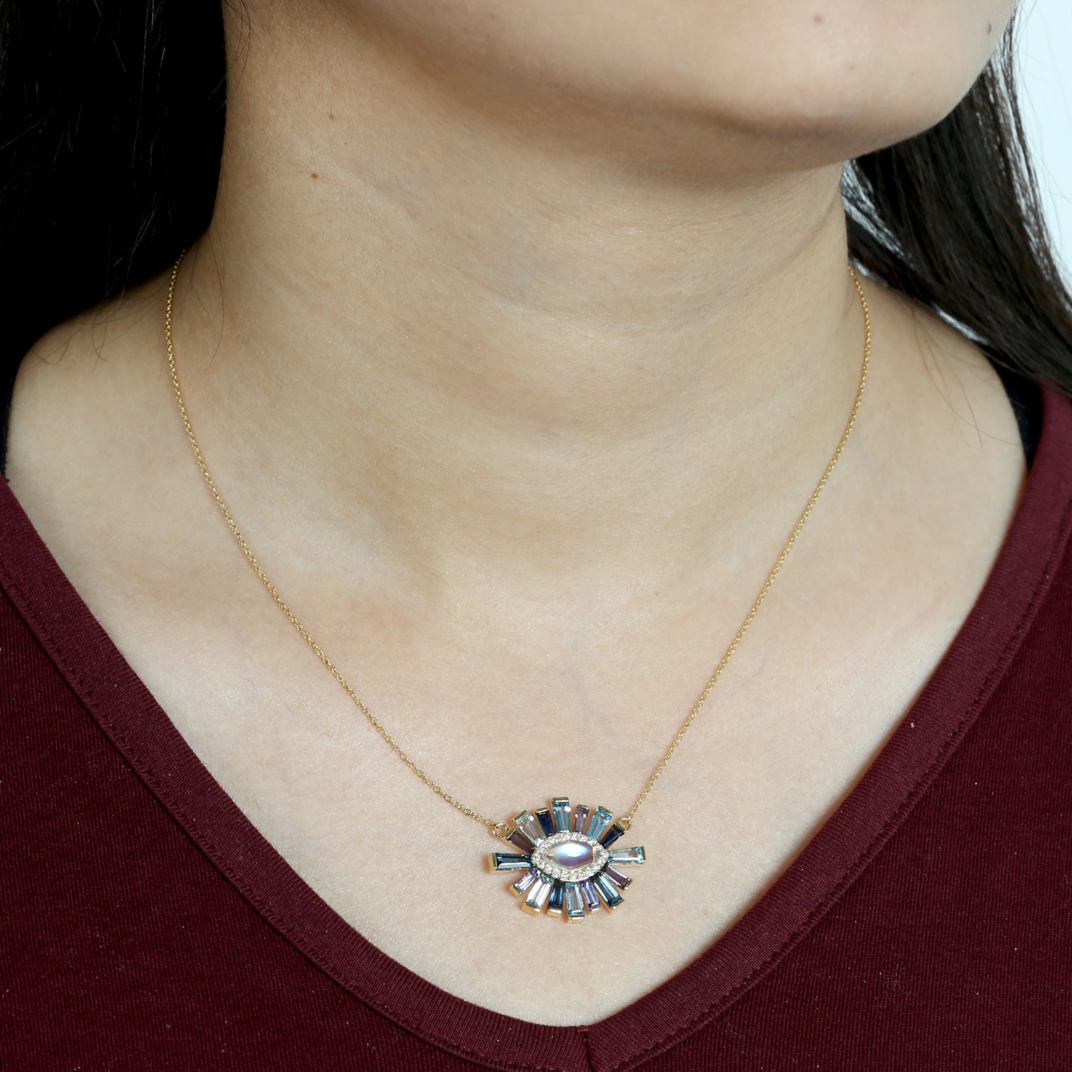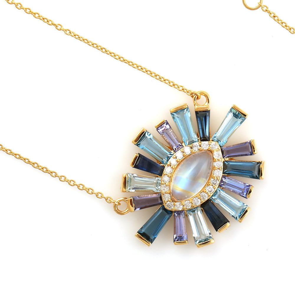 Tapered Baguette Iolite Moonstone Pave Diamond Chain Necklace In 18k Yellow Gold