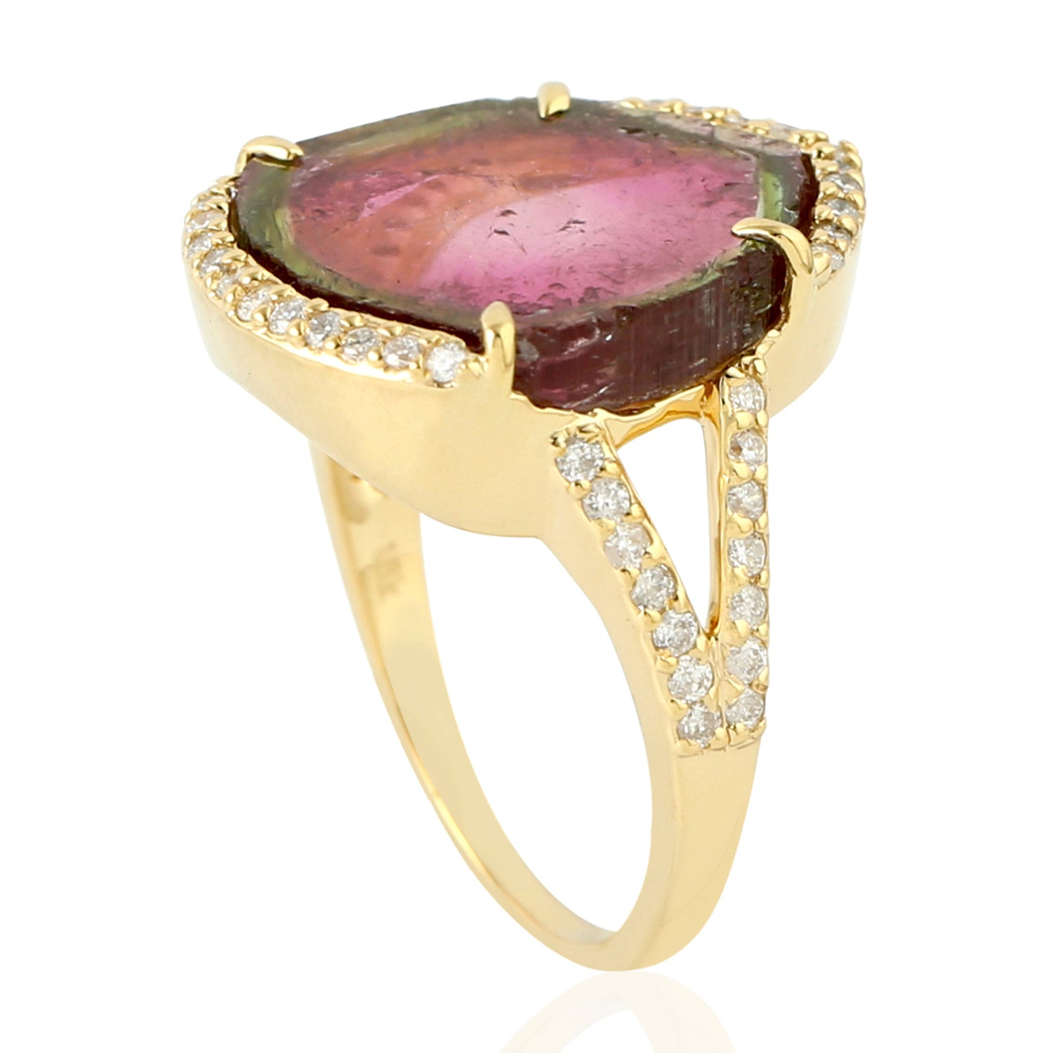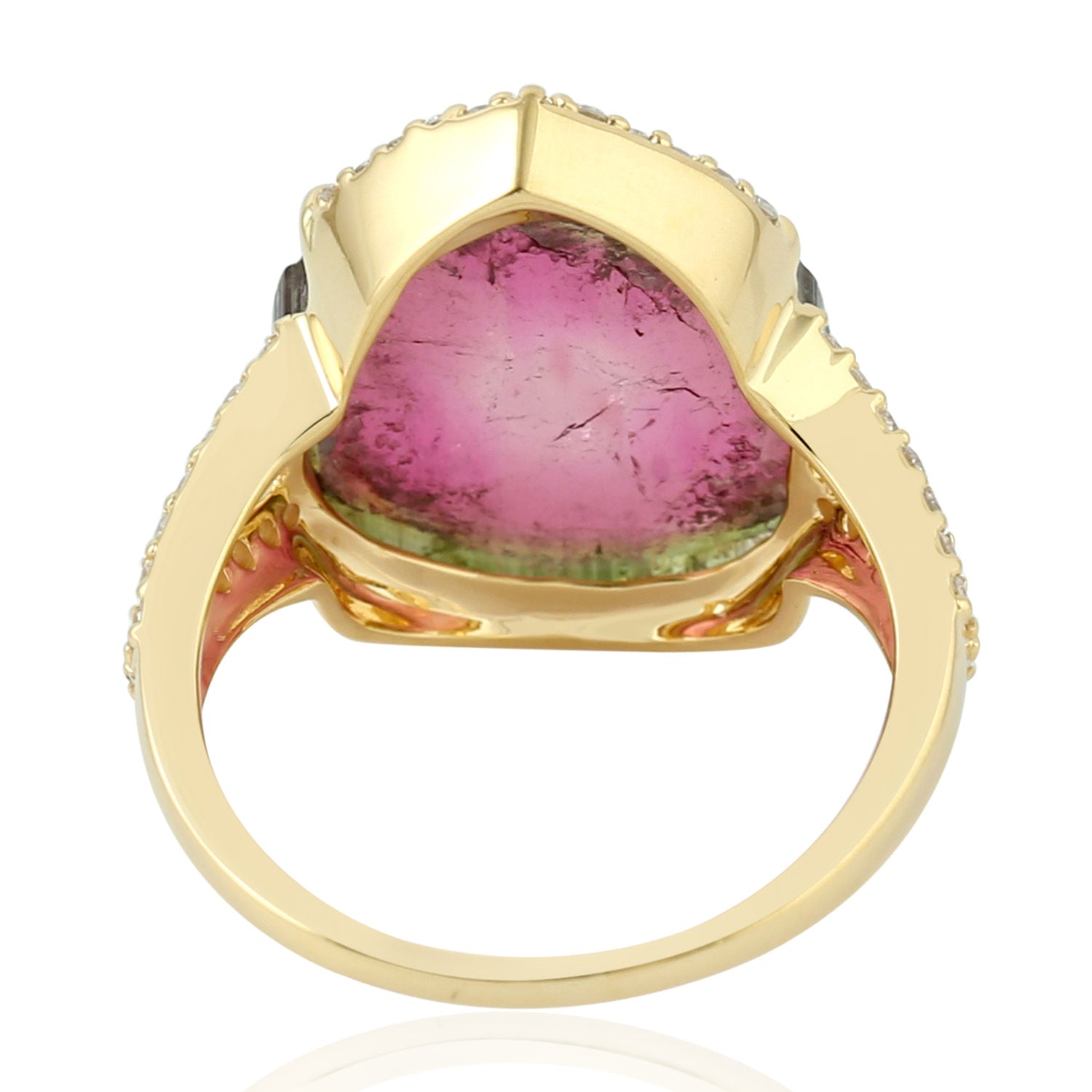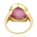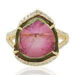 Tourmaline Melon Pave Diamond In 18k Yellow Gold Cocktail Ring
