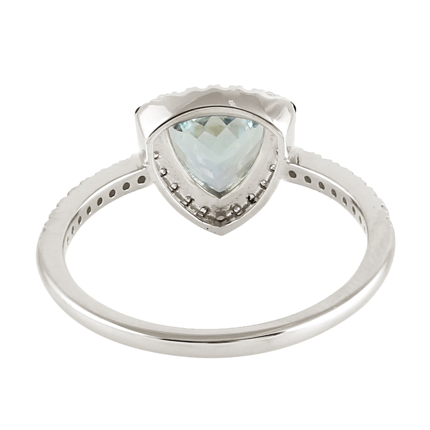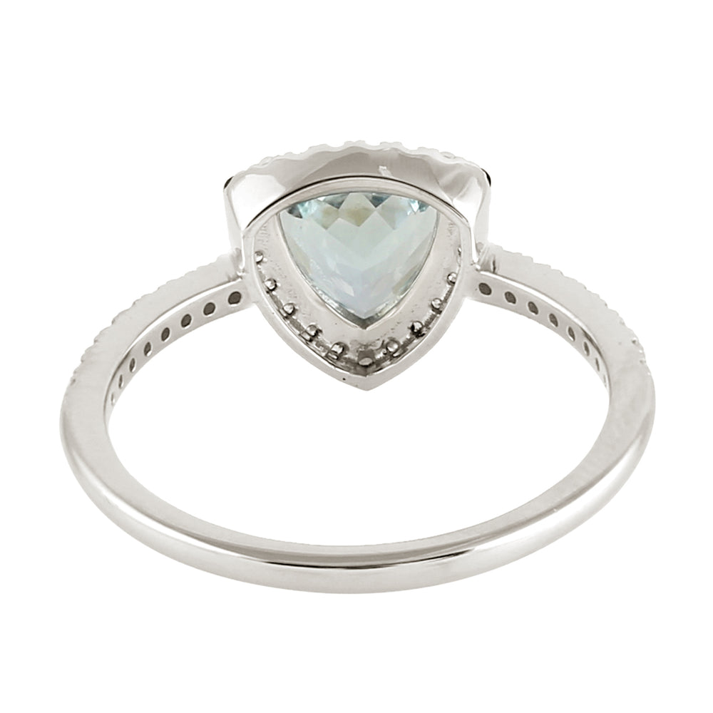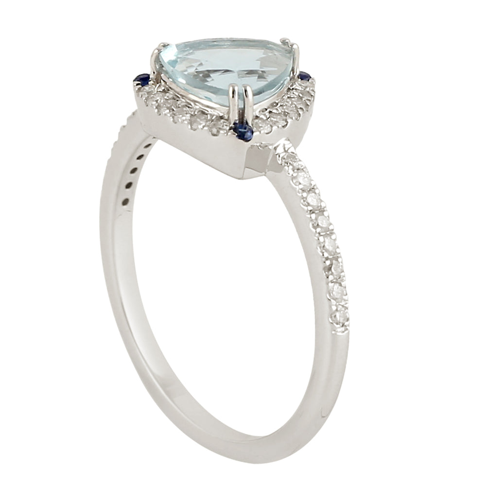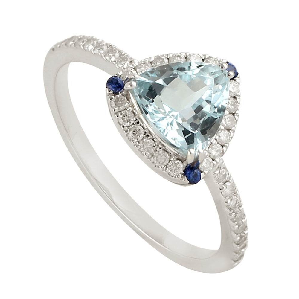 Trillion Aquamarine Blue Sapphire Pave Diamond In 18k White Gold Ring