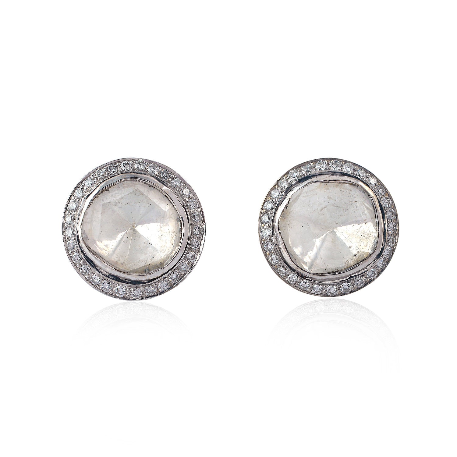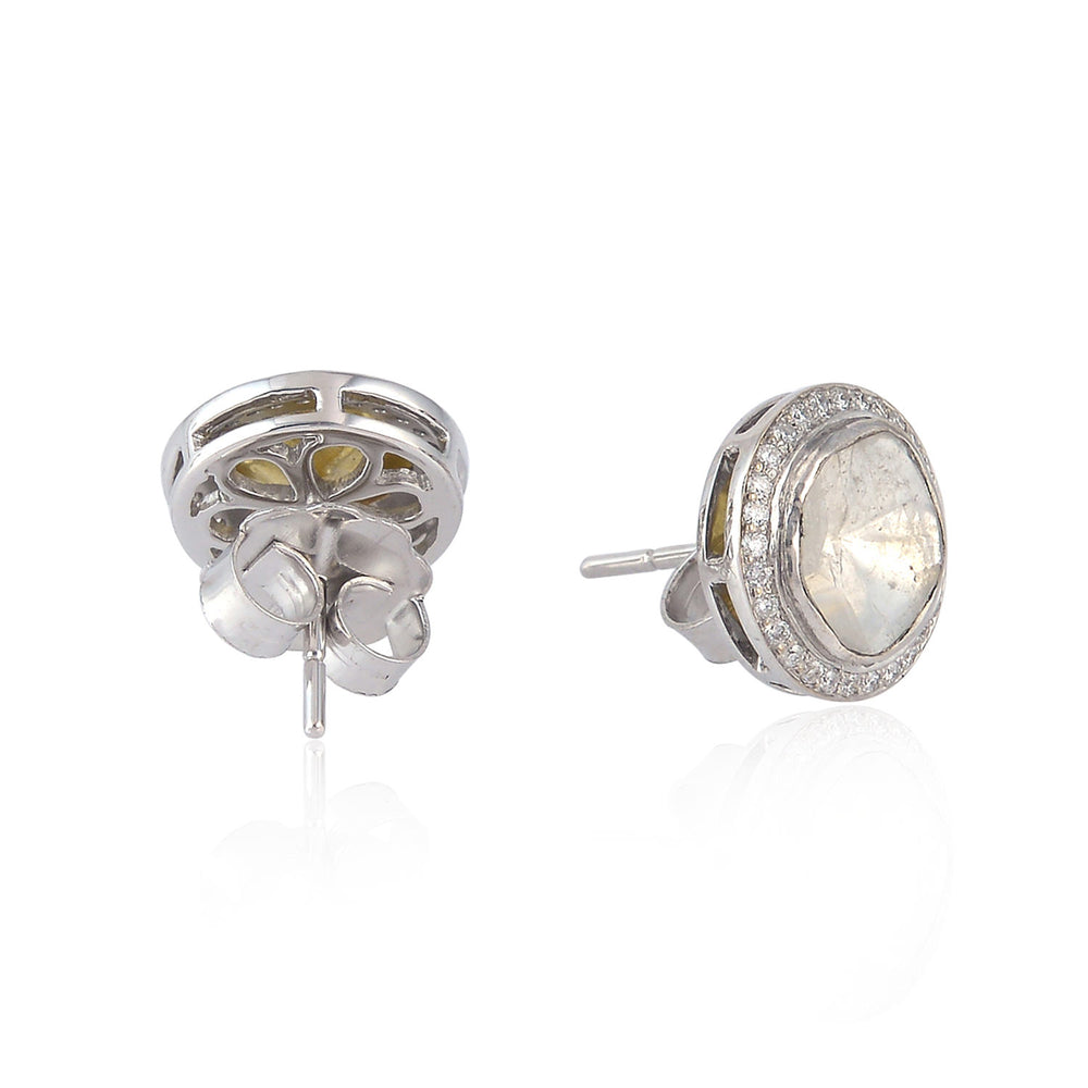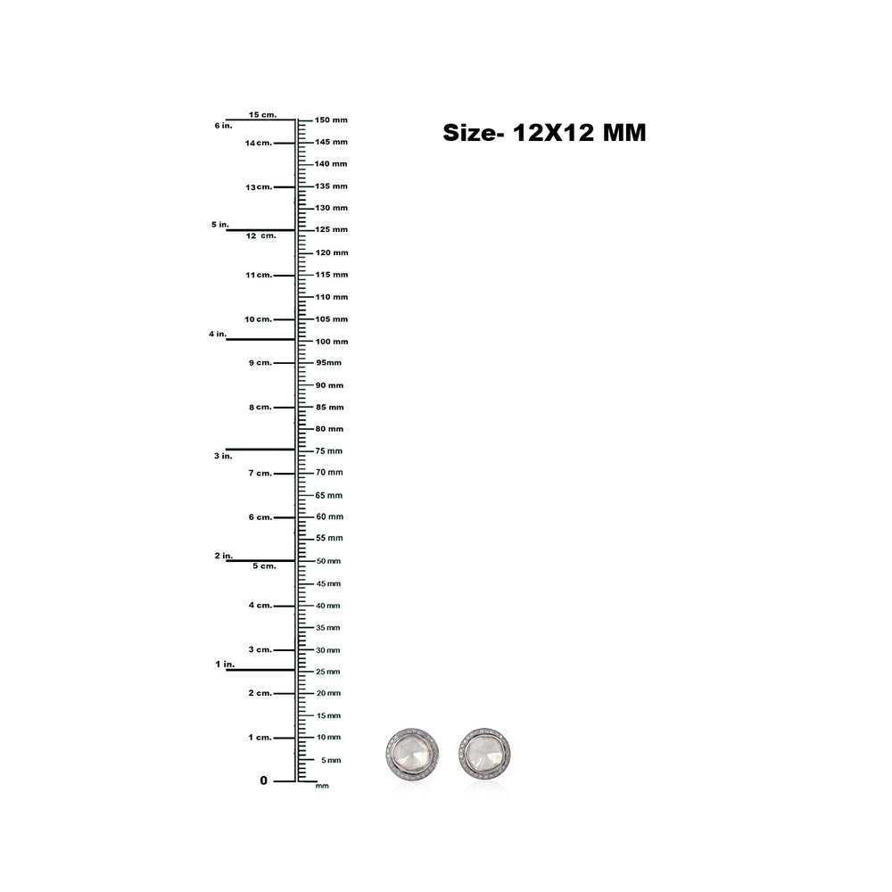 Uncut Diamond Round Stud Earrings Wedding Gift In 18k White Gold