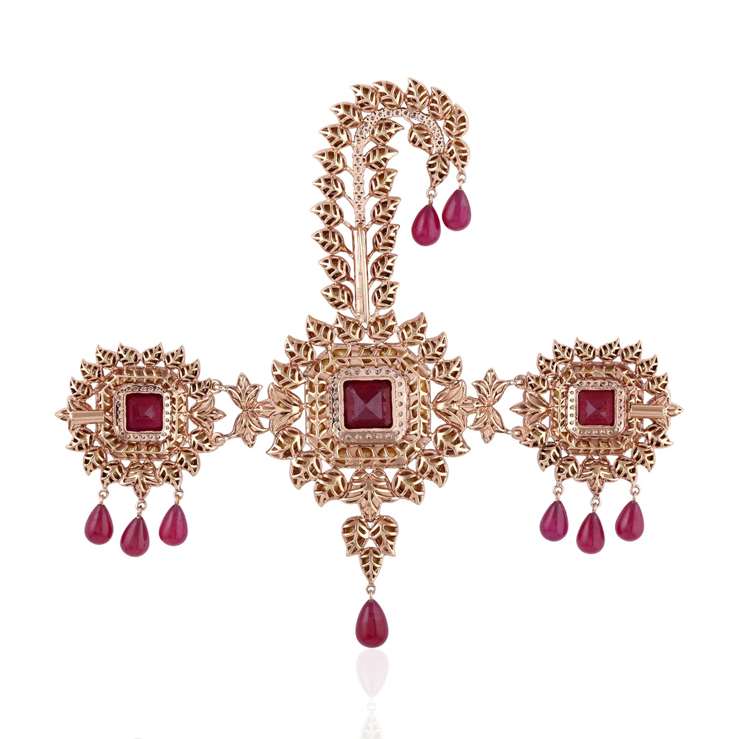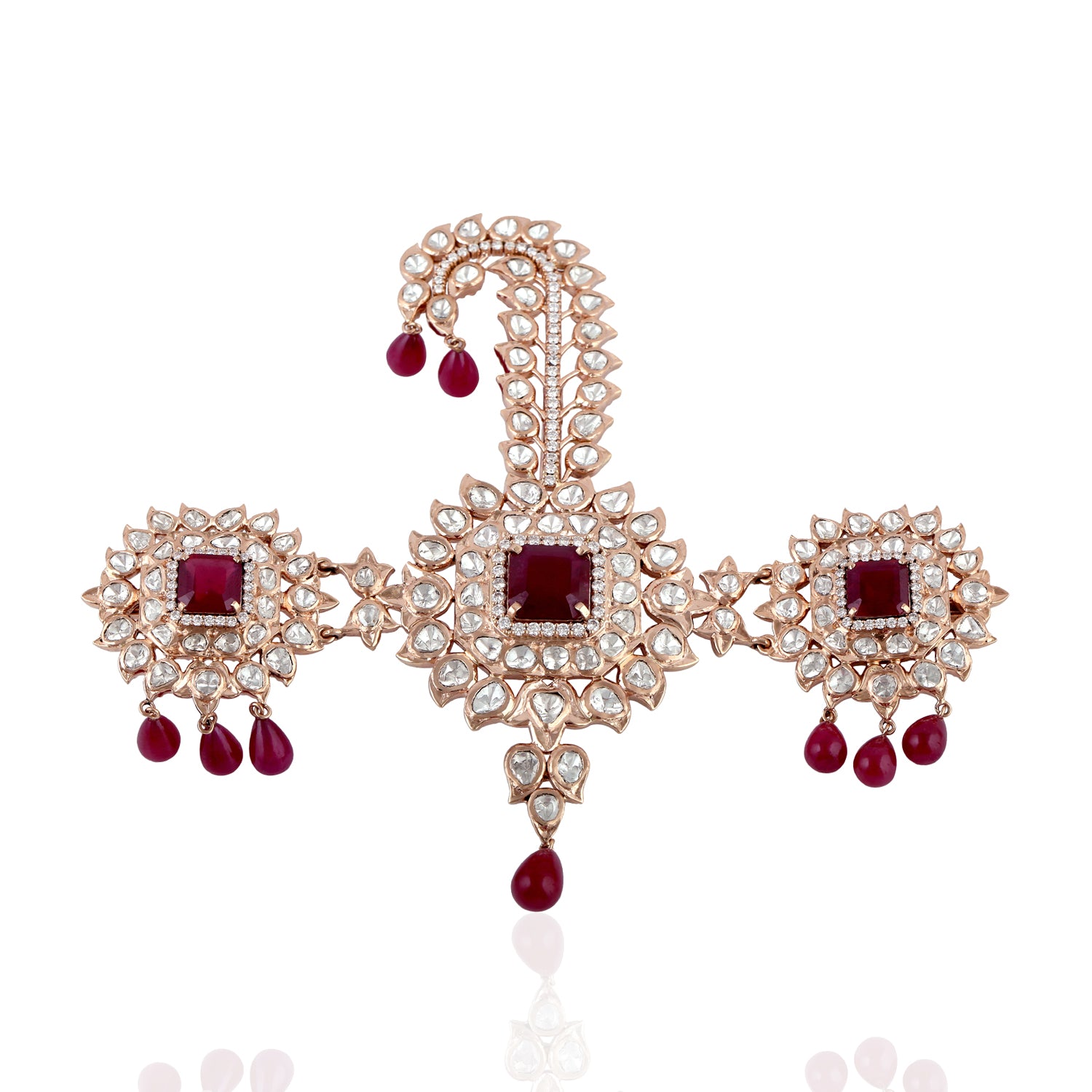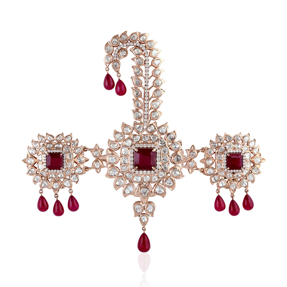 Uncut Rose cut Diamond Ruby Glass 18k Rose Gold Designer Findings Jewelry
