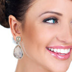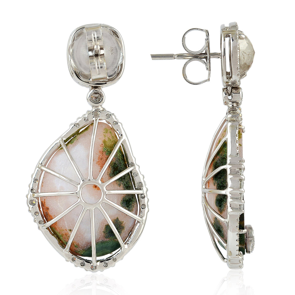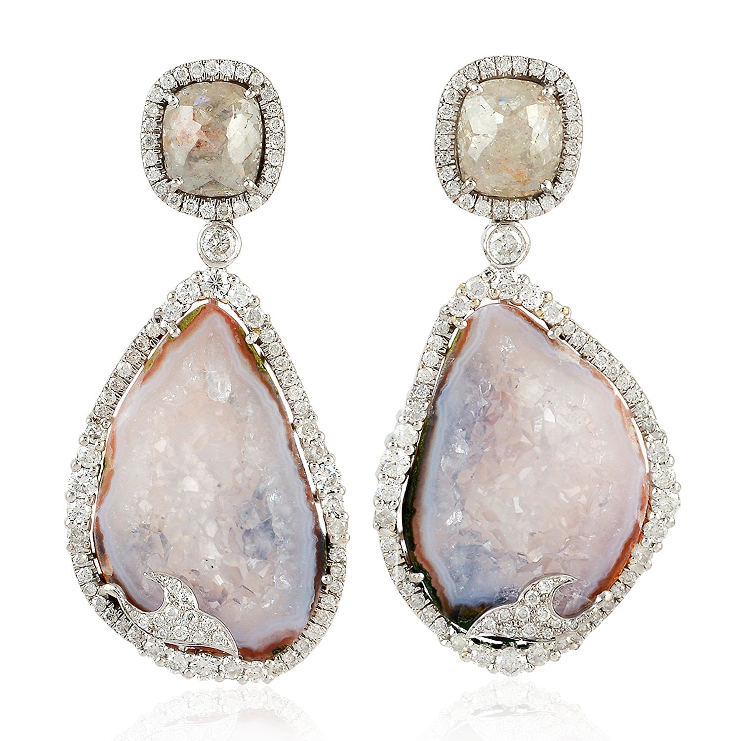Uneven Geode Ice Diamond Micro Pave Designer Earrings In 18K White Gold