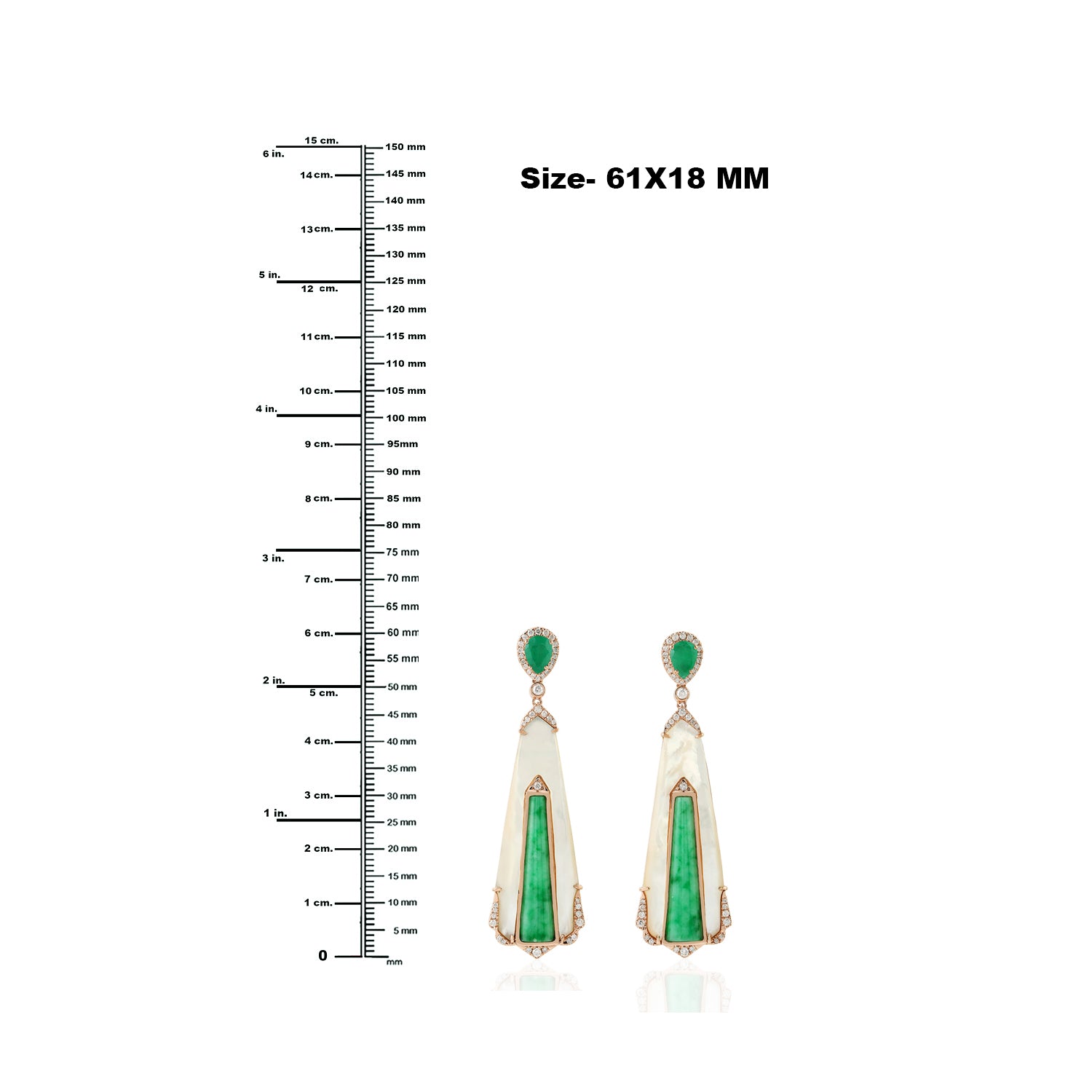 MOP Pear Emerald Jade Pave Diamond Drop/Dangle Earrings In Rose Gold